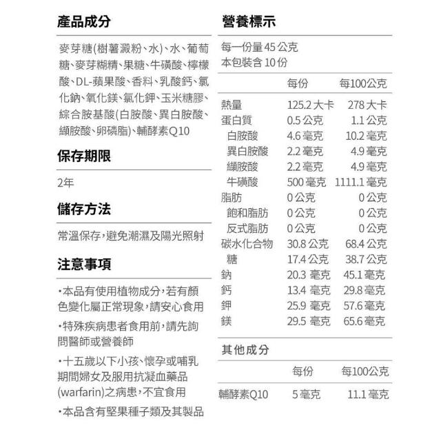 - 加牛磺酸、BCAA輔酶、Q10