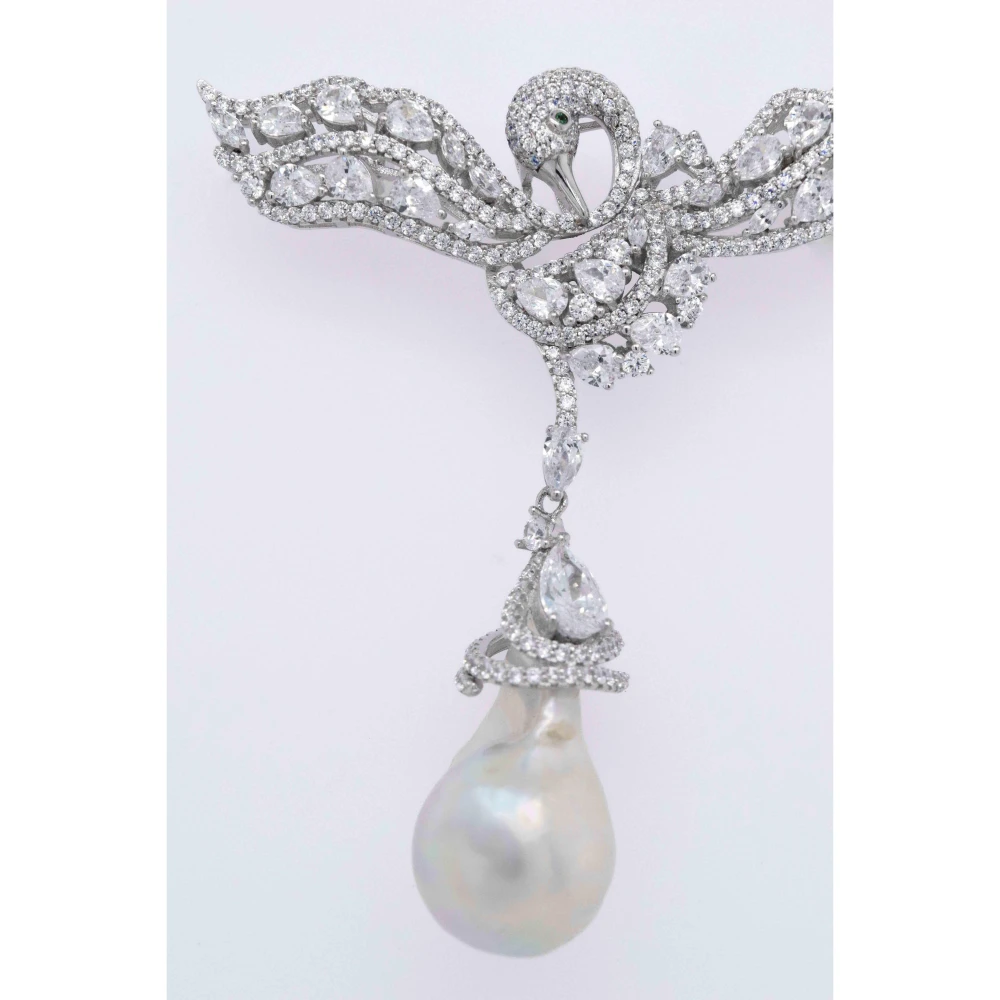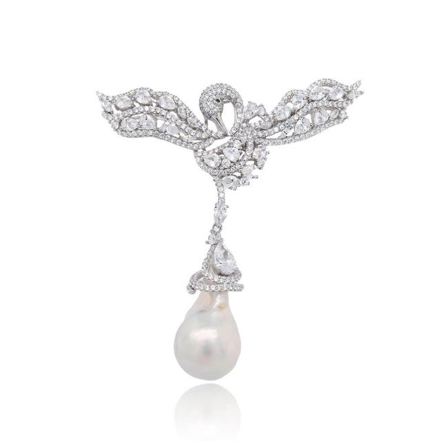 Lavina 菈薇娜LAVINA天鵝湖之美系列-手工鑲石925銀巴洛克珍珠天鵝胸針
