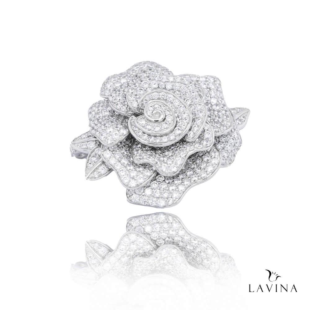 Lavina 菈薇娜LAVINA藝術花韻系列-手工鑲石925銀純白玫瑰胸針