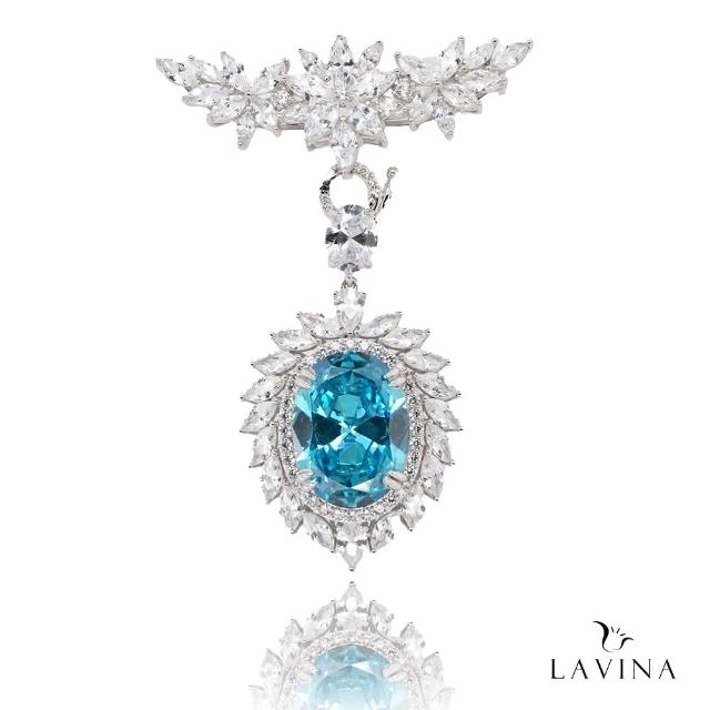 Lavina 菈薇娜LAVINA雙重風采系列-天際之美925銀水藍寶石吊墜兩用胸針