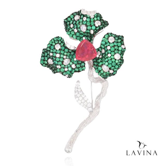 Lavina 菈薇娜LAVINA藝術花韻系列-福祿花卉Ruby手工鑲石925銀造型胸針