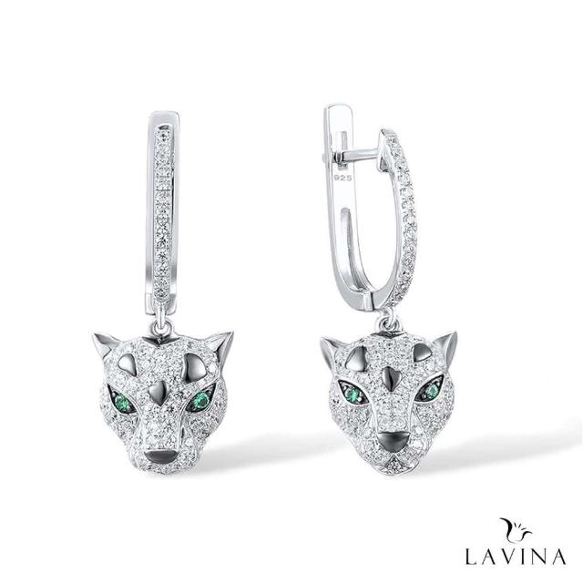 Lavina 菈薇娜LAVINA野性之魅系列-銀色美洲豹輕奢垂墜925銀耳飾