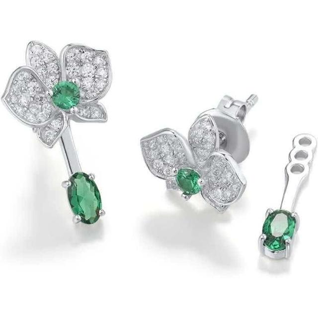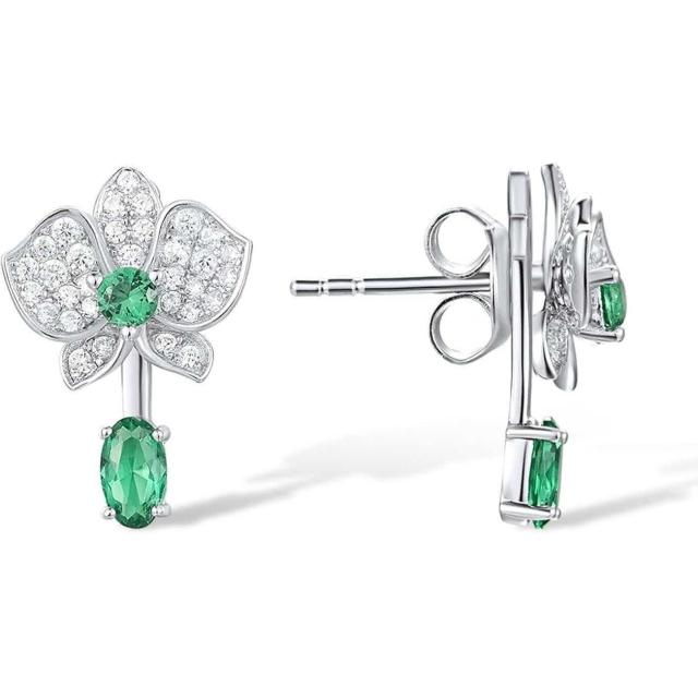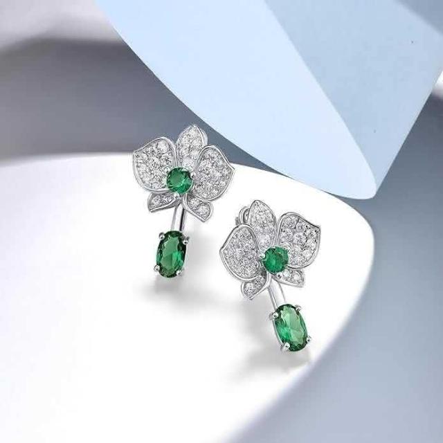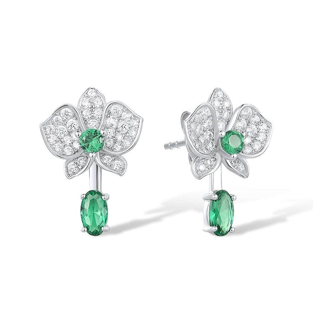 - 優雅蘭花,綠寶耳飾設計