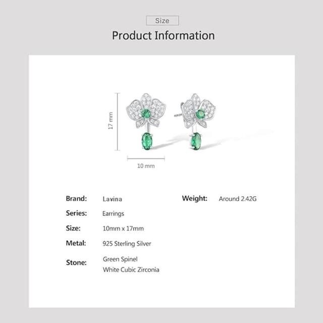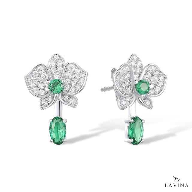 Lavina 菈薇娜LAVINA藝術花韻系列-小蘭花綠寶石垂墜多樣性精緻925銀耳飾