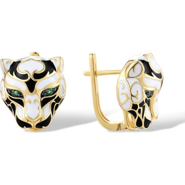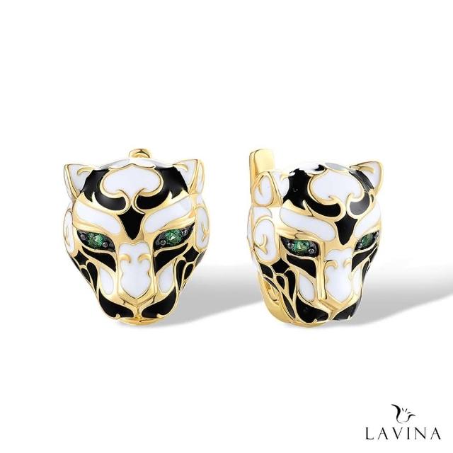 Lavina 菈薇娜LAVINA野性之魅系列-華麗白色美洲豹滴油水鑽925銀耳飾