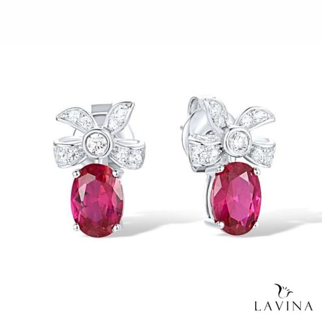 Lavina 菈薇娜LAVINA簡雅之光系列-精緻Ruby蝴蝶結925銀耳飾