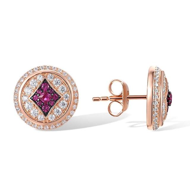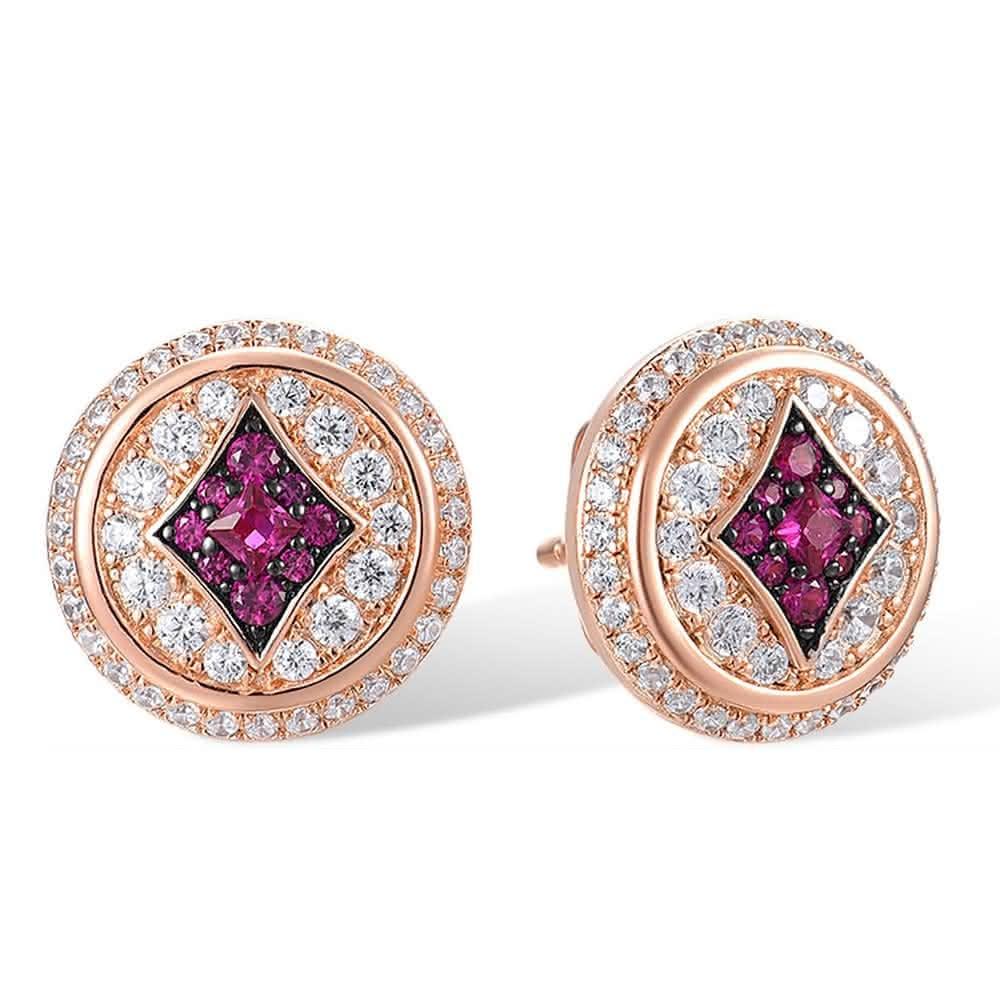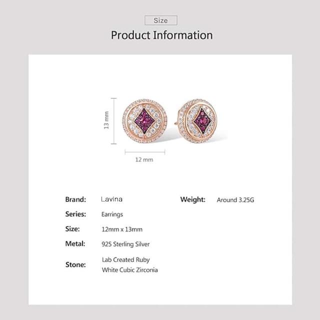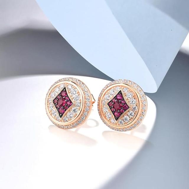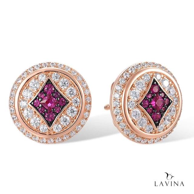 Lavina 菈薇娜LAVINA奢華璀璨系列-925銀華麗桃紅方塊閃耀耳環