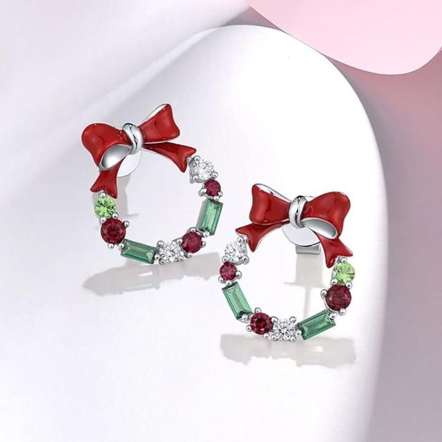 Lavina 菈薇娜LAVINA歡樂絢爛系列-925銀夢幻紅晶花環耳環
