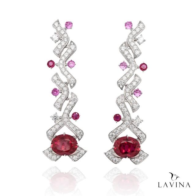 Lavina 菈薇娜LAVINA簡雅之光系列-925銀璀璨優雅粉白交織耳釘耳環