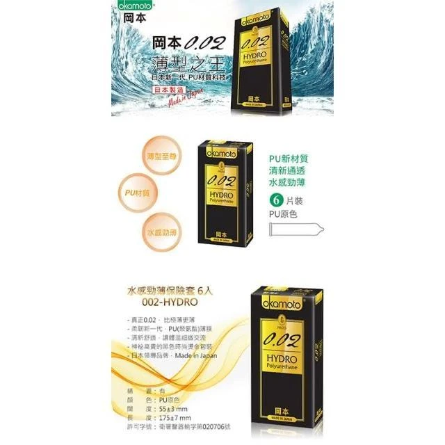 okamoto 岡本岡本002-HYDRO 水感勁薄保險套-6入裝 避孕套 情趣用品 男用情趣