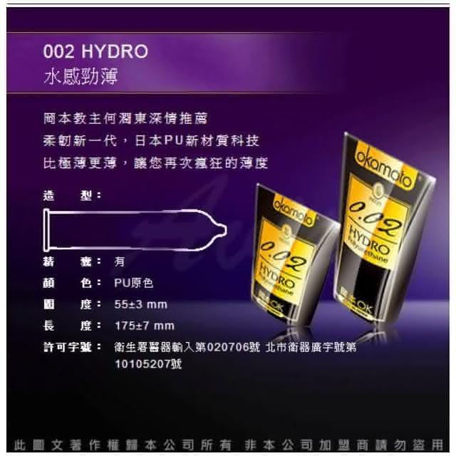 okamoto 岡本岡本002-HYDRO 水感勁薄保險套-6入裝 避孕套 情趣用品 男用情趣