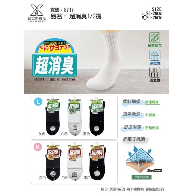 ALX 歐克斯(12入)台灣製 超消臭 毛巾除臭襪 束口襪/無痕寬口襪 襪子 中筒襪 運動襪 籃球襪 男襪 女襪 運動襪 毛巾襪學生襪