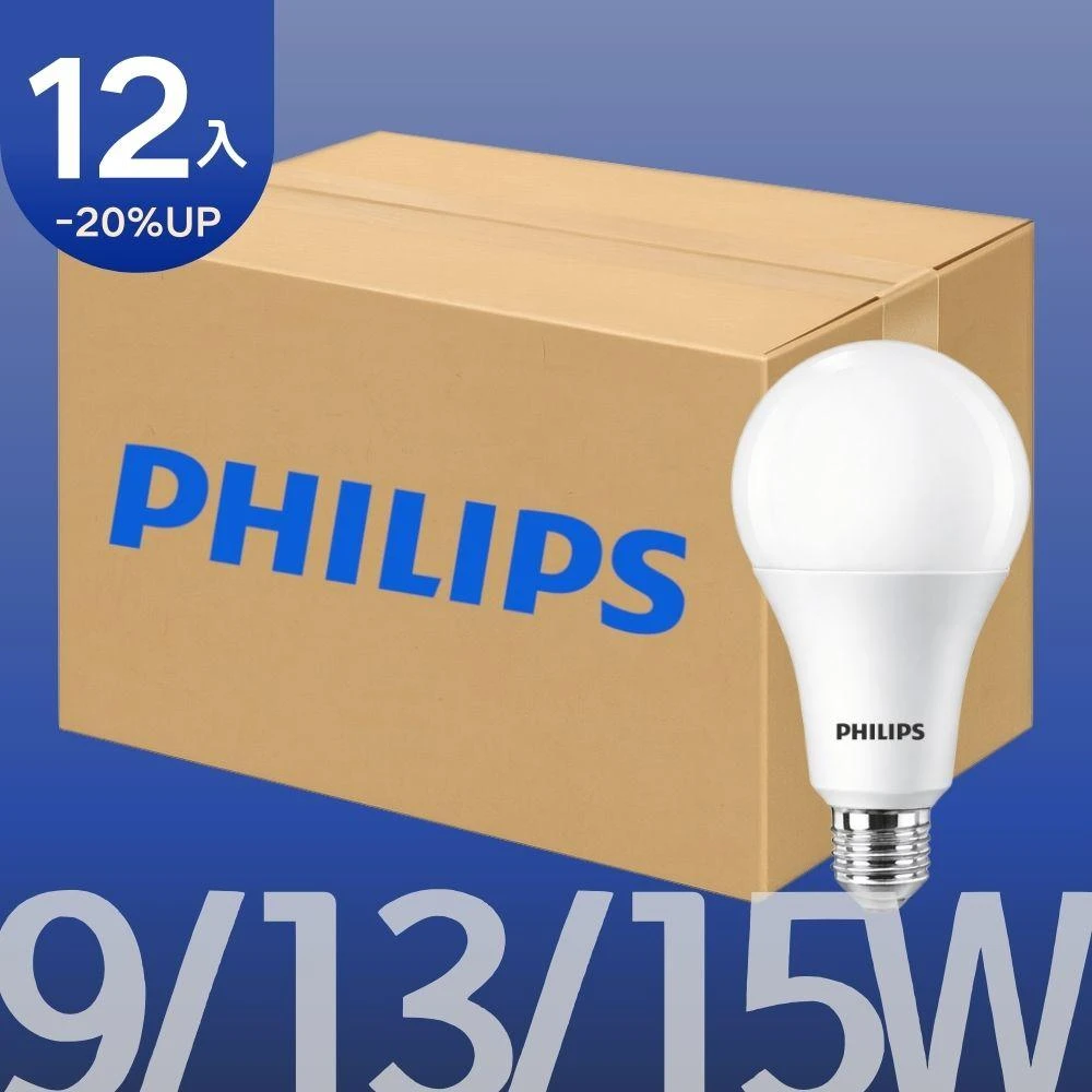Philips 飛利浦(12入組) 第三代易省最新款 護眼無藍光 LED燈泡 9W/11.5W/12W/13W/15W E27 燈泡