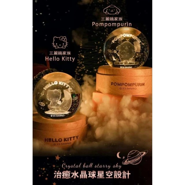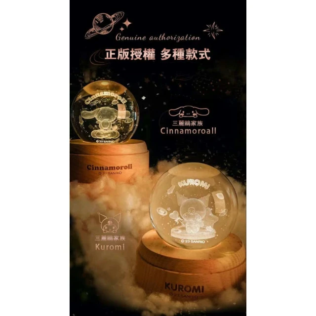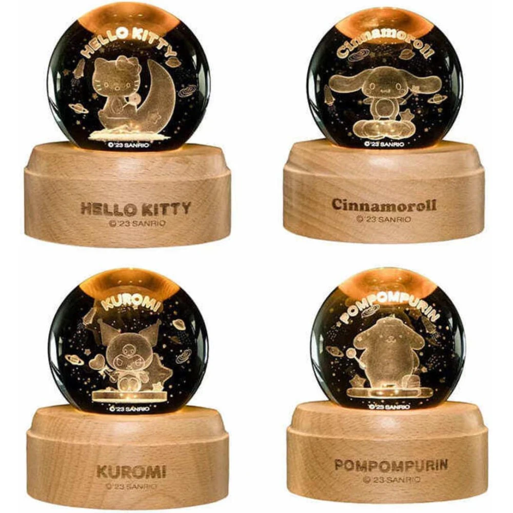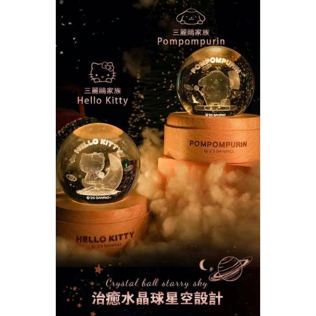 SANRIO 三麗鷗水晶球小夜燈 床頭小夜燈 星空水晶球 伴睡夜燈 解壓 手辦 公仔 玩具 擺件 兒童夜燈 臥室裝飾 送禮 生日 交換 禮物