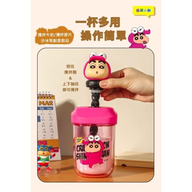 Hello 蠟筆小新立體公仔攪拌杯 500ML (正版授權 小白 動感超人 小新 左衛門 水壺 水杯 運動水壺 攪拌吸管 兒童水壺 隨身水壺 提手隨身杯 送禮 生日禮物 交換禮物 聖誕禮物