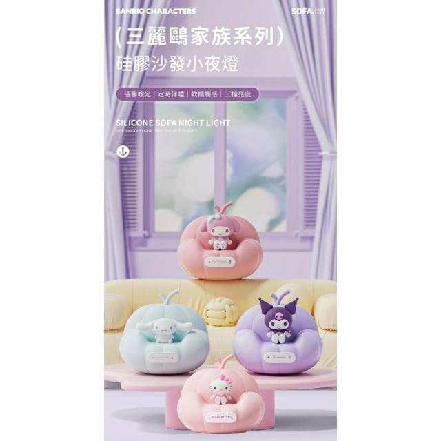 SANRIO 三麗鷗硅膠沙發拍拍小夜燈 (床頭小夜燈 3D立體造型 可調光定時 護眼柔光 一拍即亮拍拍燈 庫洛米 大耳狗 美樂蒂 解壓 手辦 公仔 擺件 玩具 兒童夜燈 送禮 生日禮物 床頭燈 拍拍燈 交換禮物 聖誕禮物)