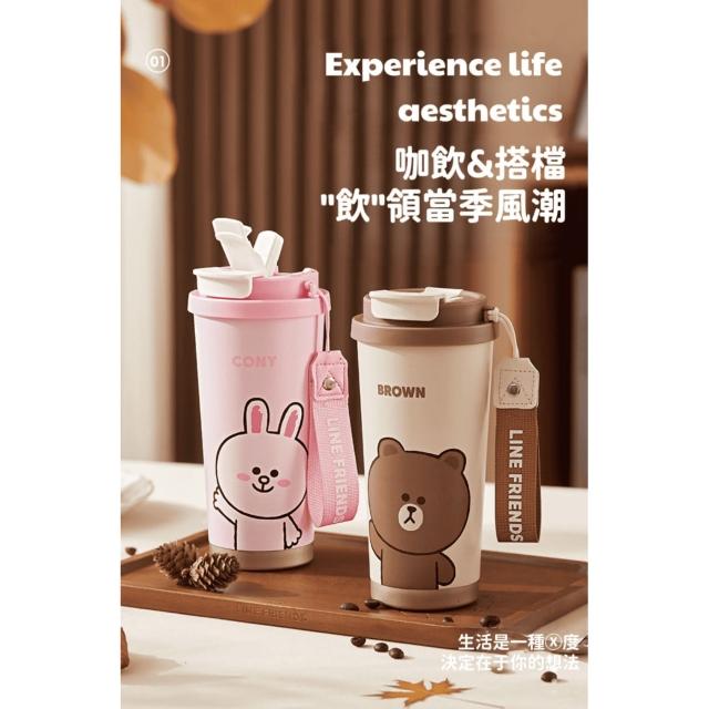 LINE FRIENDS吸管保溫隨行杯 500ml ( 正版授權 熊大 兔兔 316不鏽鋼 保冰保熱 真空保溫 冰壩杯 運動水壺 兒童水壺 隨身水壺 隨身杯 大容量水瓶 茶杯 保溫瓶 送禮 生日禮物 交換禮物 聖誕禮物)