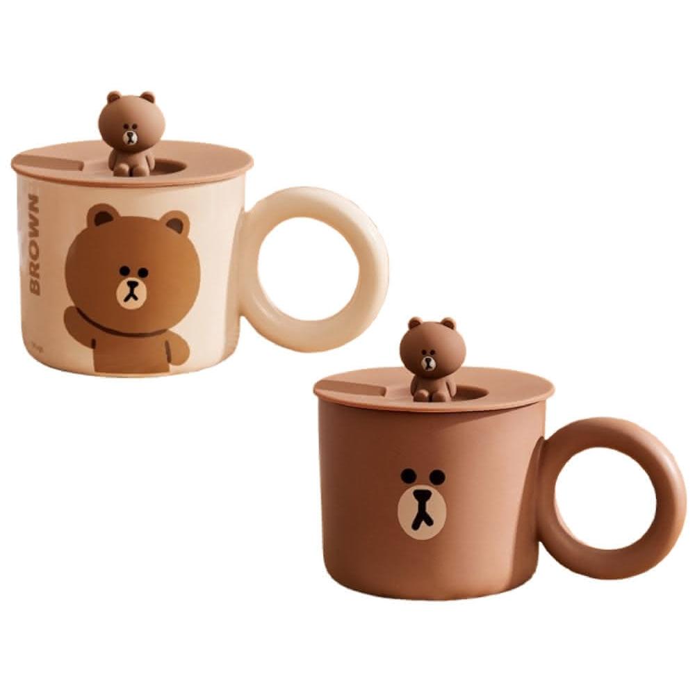 LINE FRIENDS熊大帶蓋陶瓷馬克杯 380ml (正版授權 大圓手把 早餐杯 燕麥杯 早餐杯 牛奶杯 奶茶杯 玻璃水杯 女生 夏季 大容量 杯子 大肚杯 玻璃杯 飲料杯 辦公小物 餐廚 送禮 生日禮物 交換禮物 聖誕禮物)