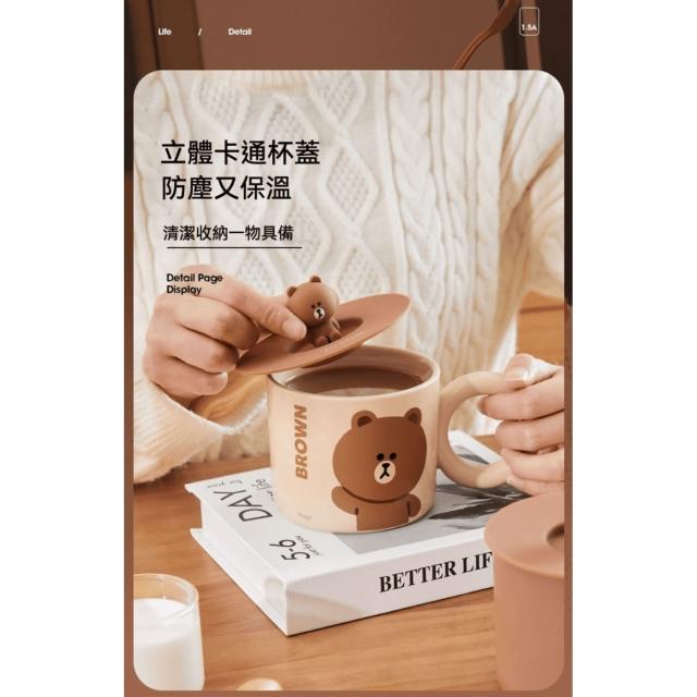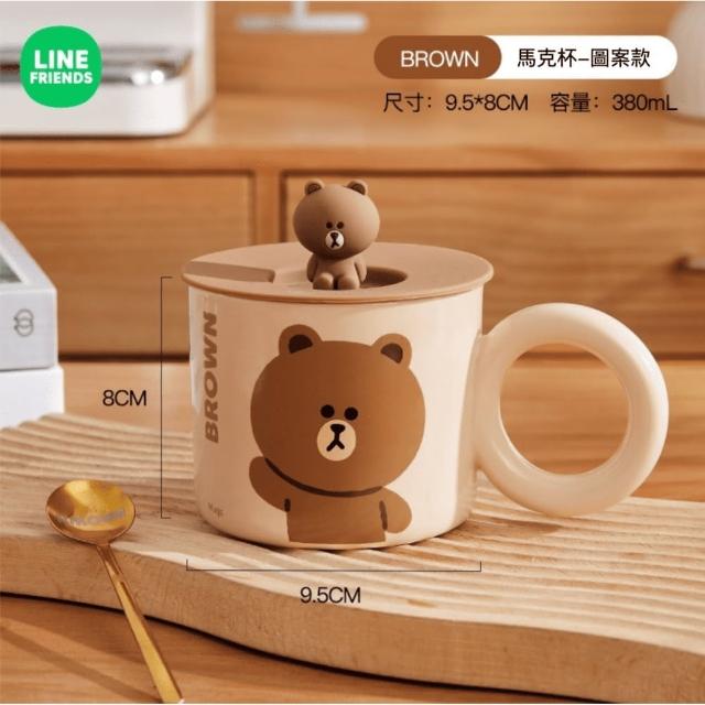 LINE FRIENDS熊大帶蓋陶瓷馬克杯 380ml (正版授權 大圓手把 早餐杯 燕麥杯 早餐杯 牛奶杯 奶茶杯 玻璃水杯 女生 夏季 大容量 杯子 大肚杯 玻璃杯 飲料杯 辦公小物 餐廚 送禮 生日禮物 交換禮物 聖誕禮物)