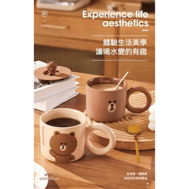 LINE FRIENDS熊大帶蓋陶瓷馬克杯 380ml (正版授權 大圓手把 早餐杯 燕麥杯 早餐杯 牛奶杯 奶茶杯 玻璃水杯 女生 夏季 大容量 杯子 大肚杯 玻璃杯 飲料杯 辦公小物 餐廚 送禮 生日禮物 交換禮物 聖誕禮物)