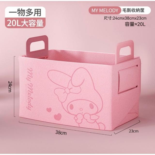 SANRIO 三麗鷗三麗鷗 收納籃 零食籃 雜物籃 玩具籃 籃子 衣物籃 布藝 收納籃 後行李箱 整理 收納 收納盒 毛氈 折疊 收納箱 折疊籃 庫洛米 大耳狗 美樂蒂