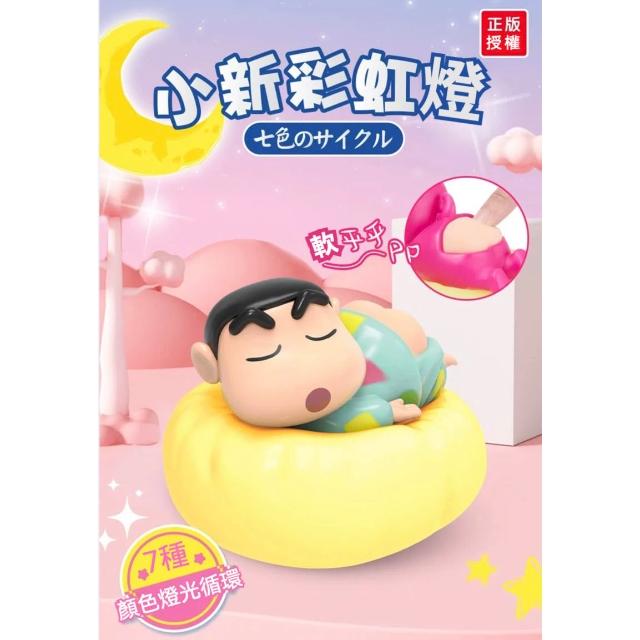 Hello 蠟筆小新彩虹小夜燈 (小夜燈 拍拍燈 床頭燈 伴睡夜燈 冷暖燈光調節 三檔色溫 捏捏燈 解壓 手辦 公仔 擺件 玩具 兒童夜燈 臥室裝飾 送禮 生日禮物 交換禮物 聖誕禮物)