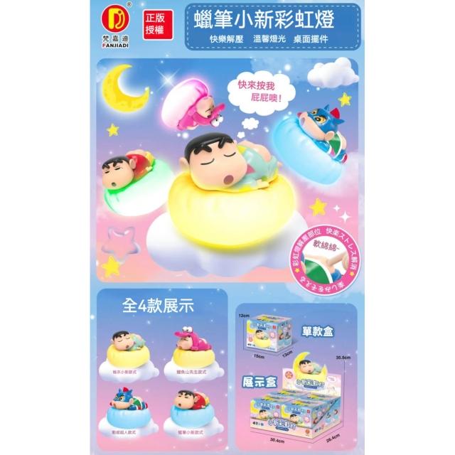 Hello 蠟筆小新彩虹小夜燈 (小夜燈 拍拍燈 床頭燈 伴睡夜燈 冷暖燈光調節 三檔色溫 捏捏燈 解壓 手辦 公仔 擺件 玩具 兒童夜燈 臥室裝飾 送禮 生日禮物 交換禮物 聖誕禮物)