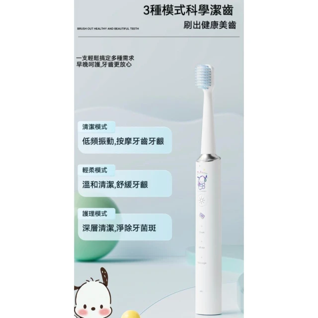 SANRIO 三麗鷗三麗鷗 Hello Kitty 帕恰狗 電動牙刷 ( 美國 杜邦刷毛 兒童 智能 聲波 電動牙刷 口腔清潔 全自動 刷牙 防水 牙刷 聲波牙刷 正版授權 送禮 生日禮物 交換禮物 聖誕禮物)