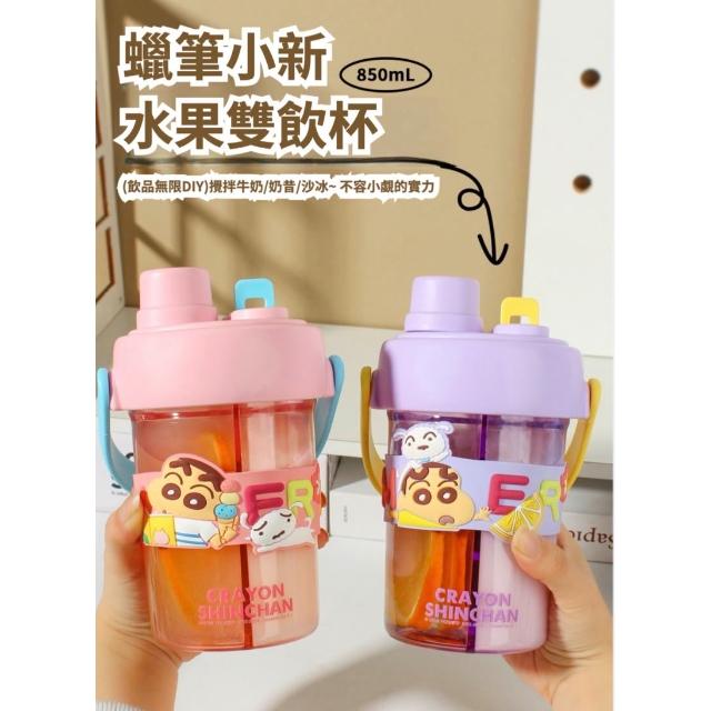 Hello 蠟筆小新蠟筆小新 果茶雙飲杯 水壺 兒童水壺 隨身杯 水杯 水瓶 PP材質 茶杯 保溫瓶 雙飲 送禮 生日 交換 禮物 85