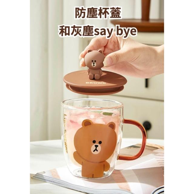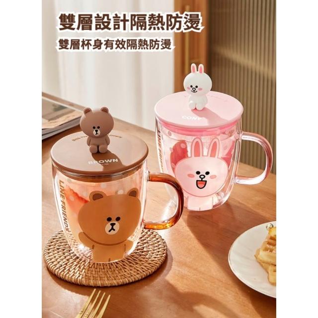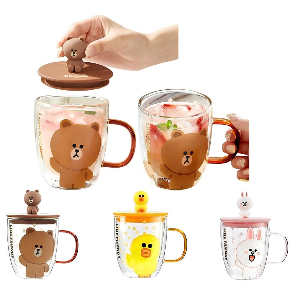 LINE FRIENDS熊大 雙層玻璃杯 隨行杯 水杯 杯子 牛奶杯 咖啡杯 玻璃杯 雙層杯 直飲杯 飲料杯 杯 送禮 生日 禮物 43#5