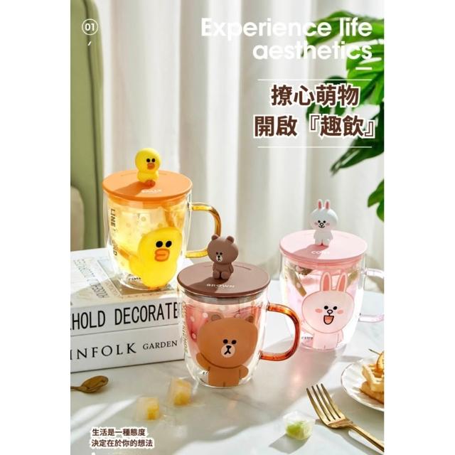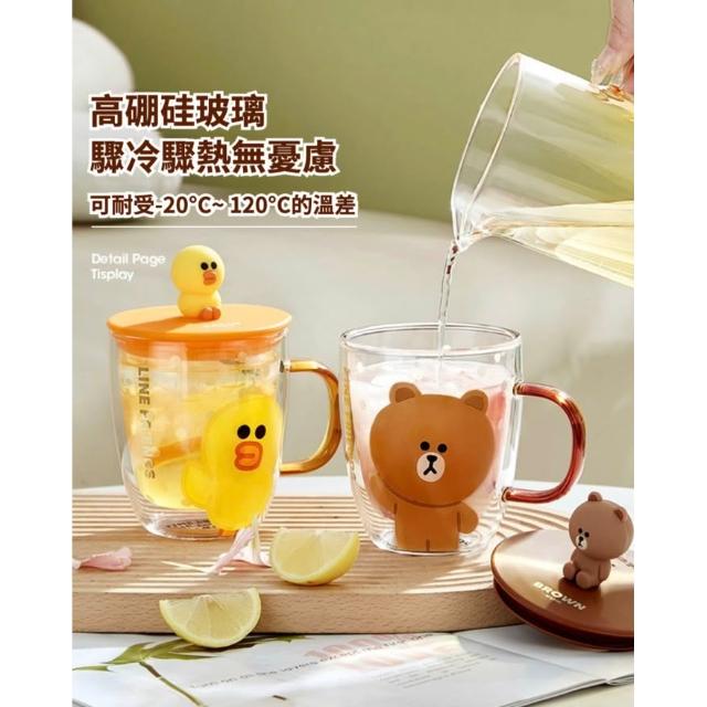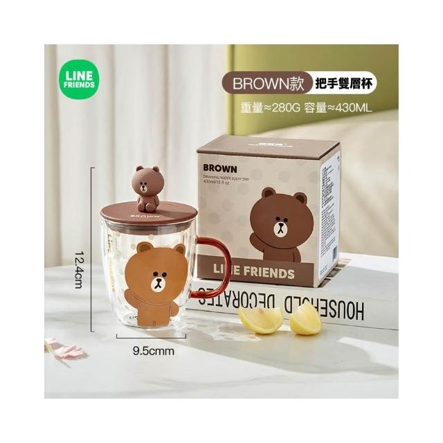 LINE FRIENDS熊大 雙層玻璃杯 隨行杯 水杯 杯子 牛奶杯 咖啡杯 玻璃杯 雙層杯 直飲杯 飲料杯 杯 送禮 生日 禮物 43#5