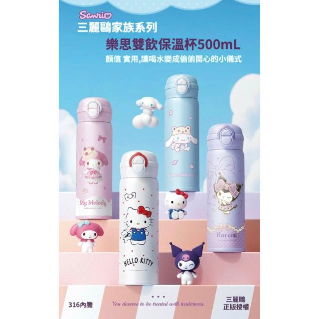 SANRIO 三麗鷗樂思雙飲杯 保溫瓶 保溫罐 吸管杯 直飲杯 保溫杯 水壺 水杯 茶杯 不鏽鋼 保冰杯 316不鏽鋼 真空保溫 50#Z