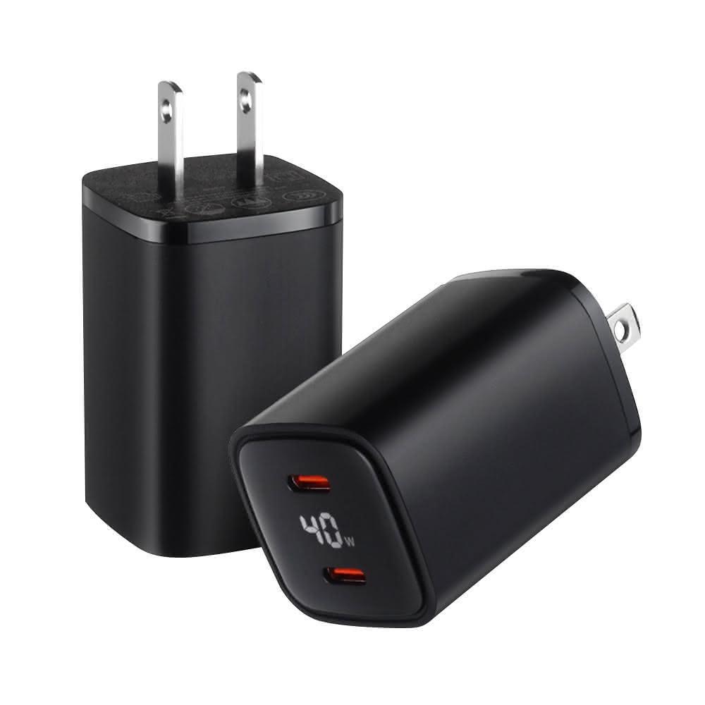 動態顯示『快充頭』40w大功率 雙TypeC ( 多設備兼容 安全保護 充電器 充電頭 快充頭 豆腐頭 充電 雙孔充電頭 )