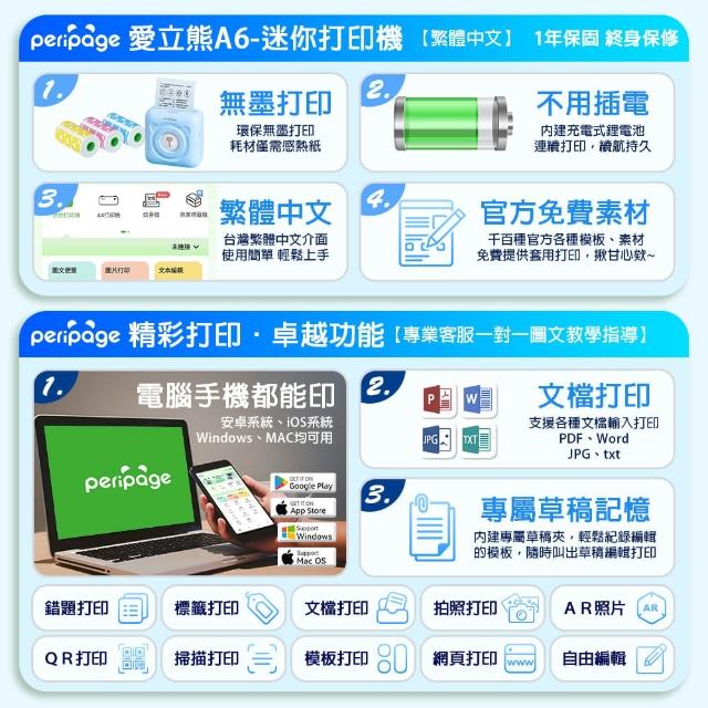 愛立熊PeriPage A6 迷你打印機(高清304dpi 錯題打印 條碼 收據 發票 標籤機 打印機 列印機)