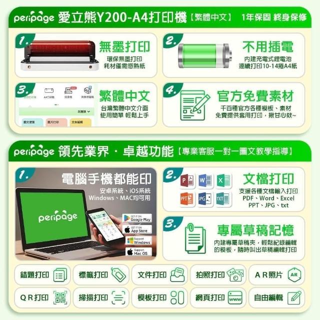 愛立熊PeriPage Y200 紋身打印機 無墨打印( 紋身列印機 標籤機 打印機 熱感列印機 列印機 紋身紙)