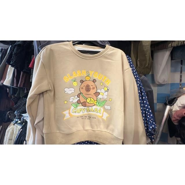 水豚君短版長袖上衣 #2320準備好迎接一波超夯的卡皮巴拉風潮了嗎?這款卡皮巴拉短版T恤 讓你成為秋冬時尚焦點,柔軟舒適