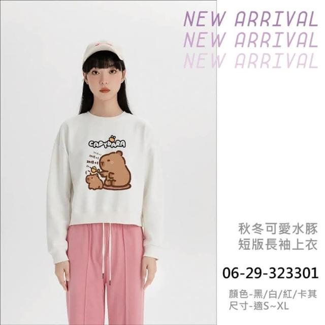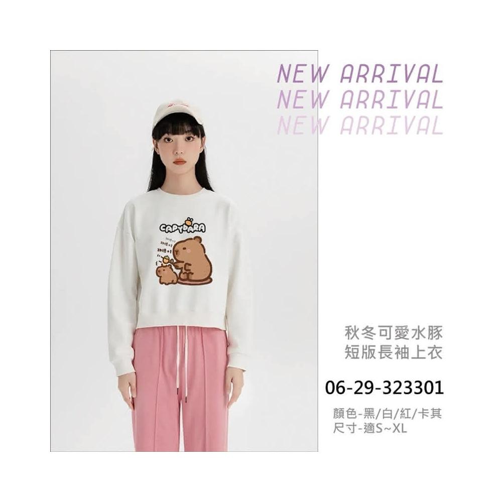 水豚君短版長袖上衣 #2320準備好迎接一波超夯的卡皮巴拉風潮了嗎?這款卡皮巴拉短版T恤 讓你成為秋冬時尚焦點,柔軟舒適