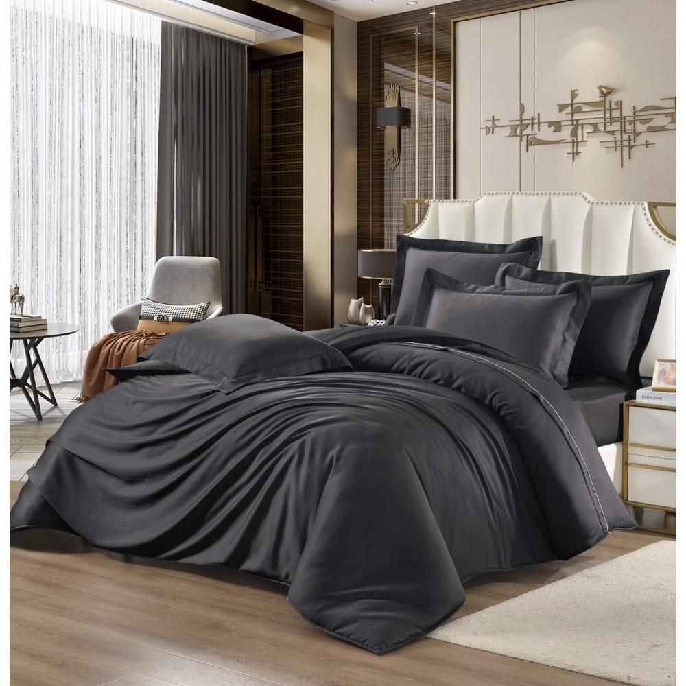 眠棉屋100%萊賽爾60支天絲舖棉兩用被+床包組-曜夜黑-5呎標準雙人天絲四件組/床包/兩用被/萊賽爾/標準雙人/被子/枕套
