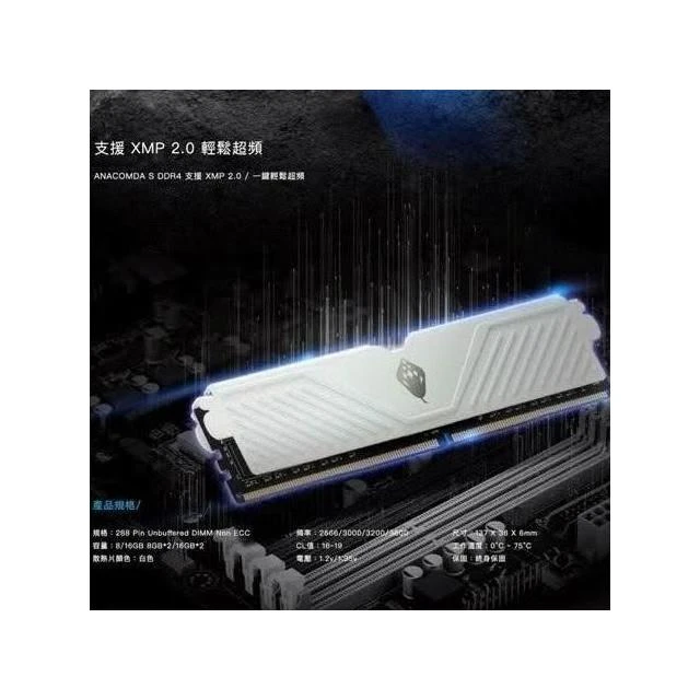 ANACOMDA 巨蟒S系列 DDR4 3200 32GB (16GBX2) 電競 超頻 記憶體 雙通包 桌上型 散熱片記憶體