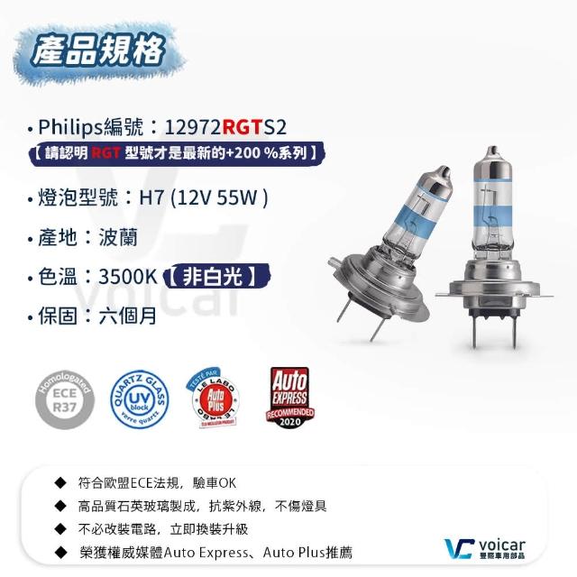 Philips 飛利浦H7 GT200 +200%(RacingVision 競技光 大燈燈泡)
