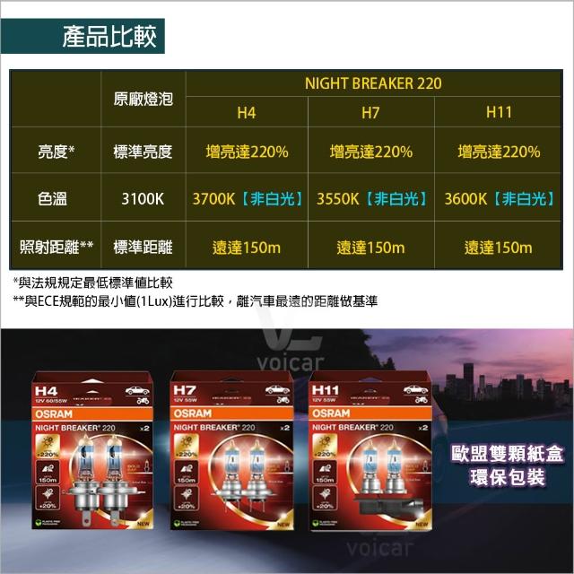Osram 歐司朗H4 H7 H11 Night Breaker 220 +220%(大燈 遠燈 鹵素燈泡)