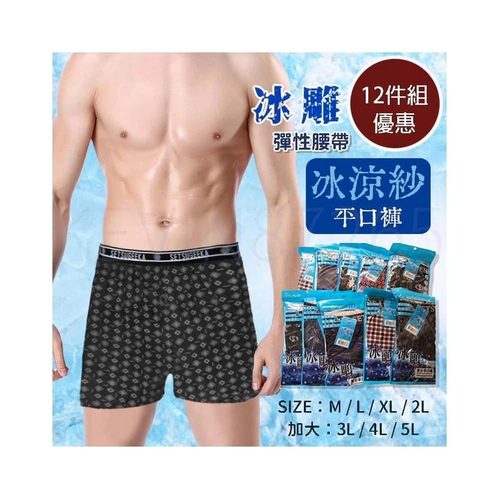 12件組 下殺 優惠 冰涼紗 冰雕 冰絲涼感內褲 男內褲 冰絲內褲 涼感內褲 男內褲 平口褲 四角褲 男生內褲