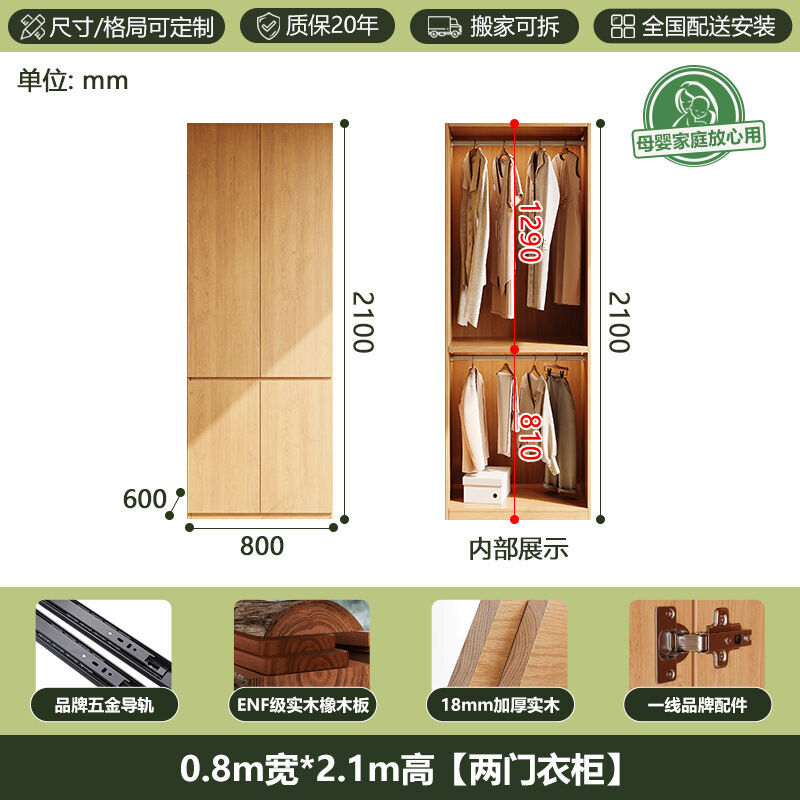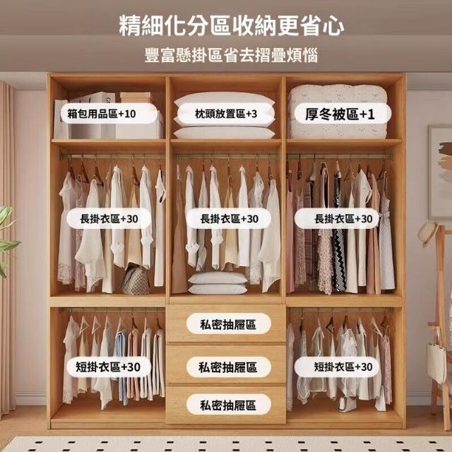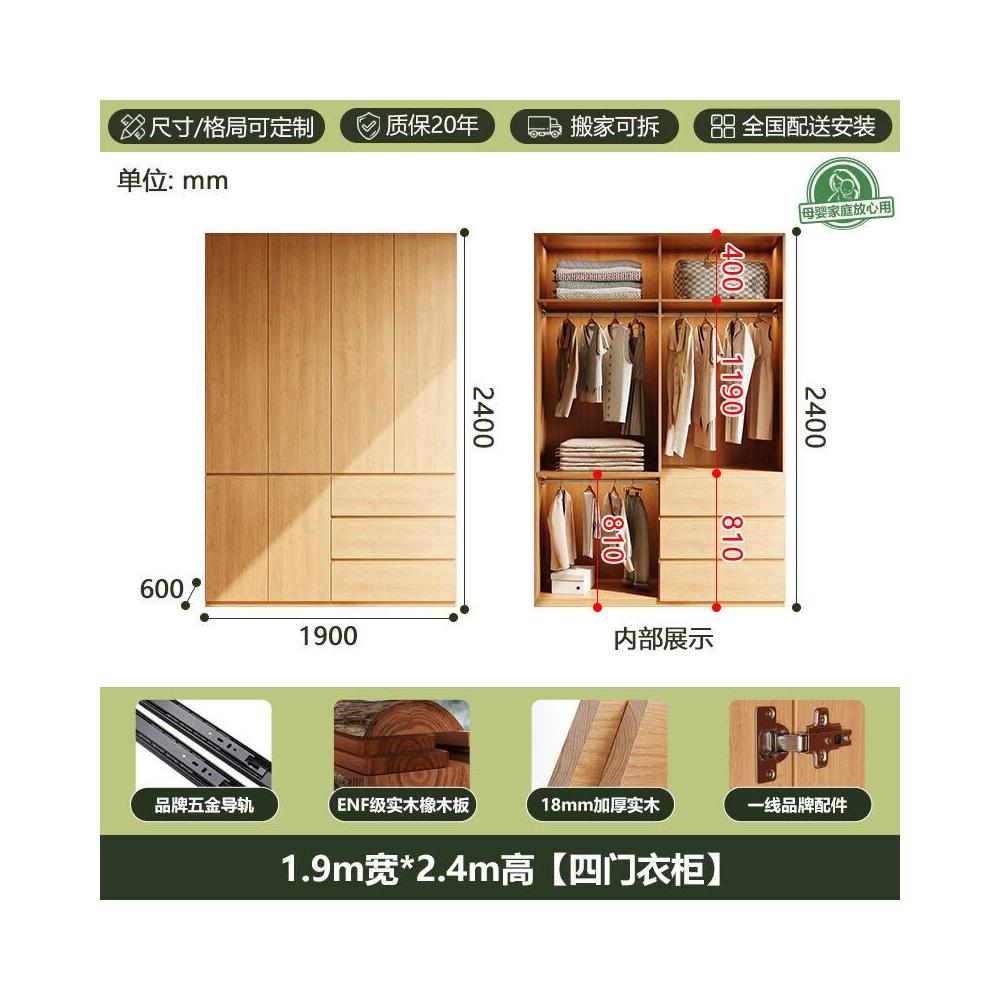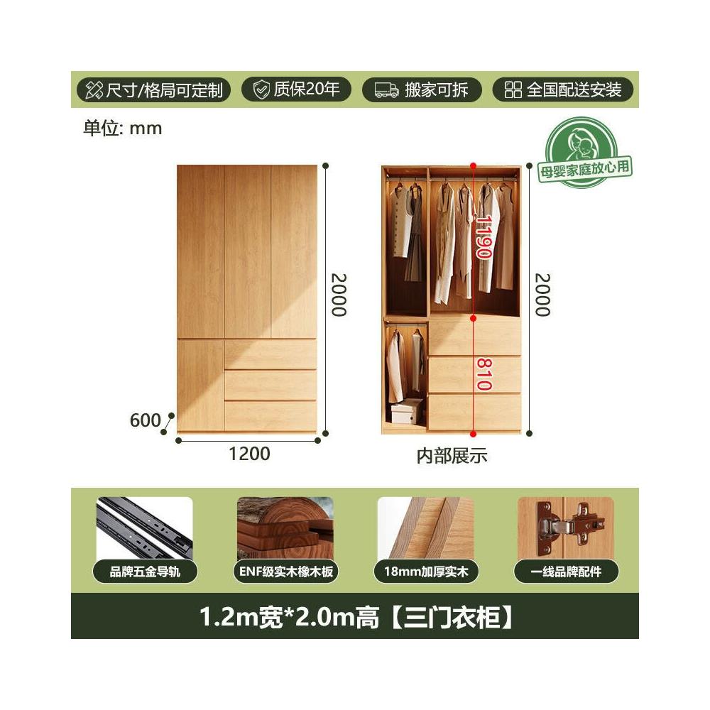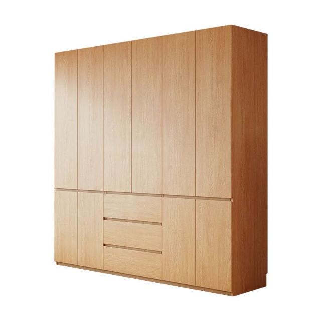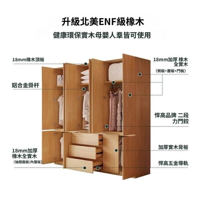 全實木ENF級橡木衣櫃原木風家用現代簡約櫃子分段式免拉手大衣櫥 b2b