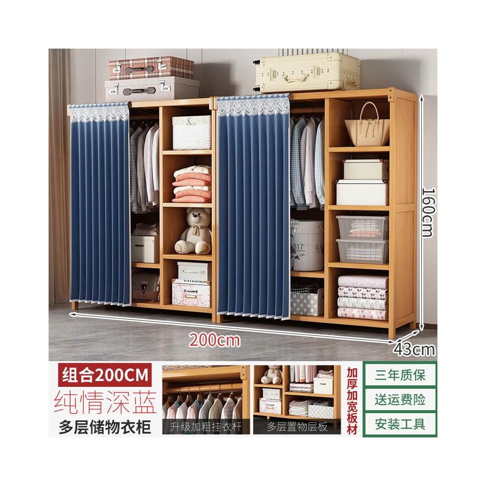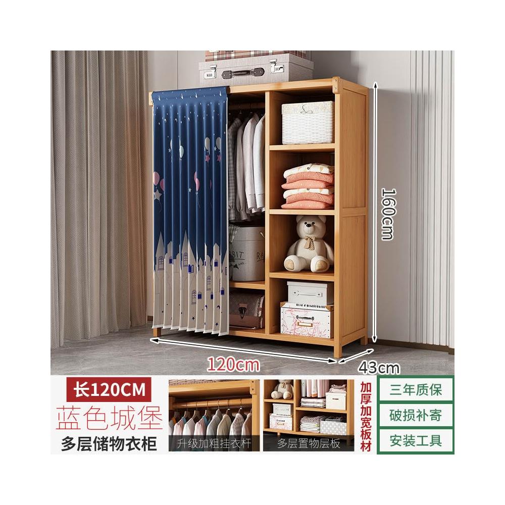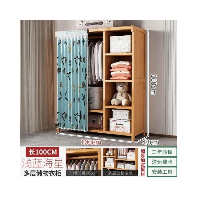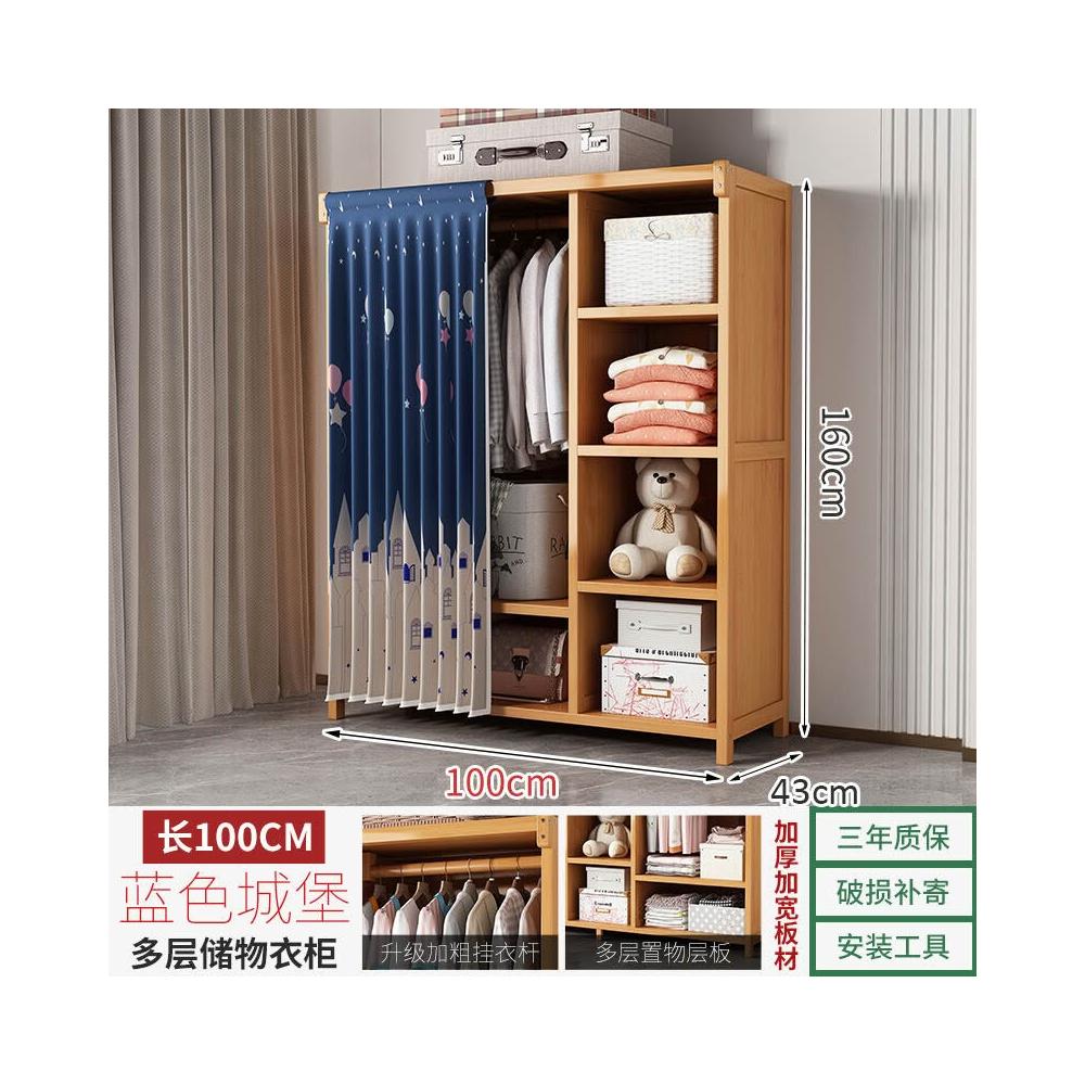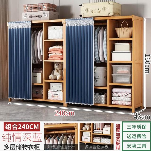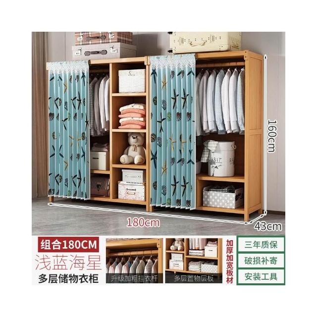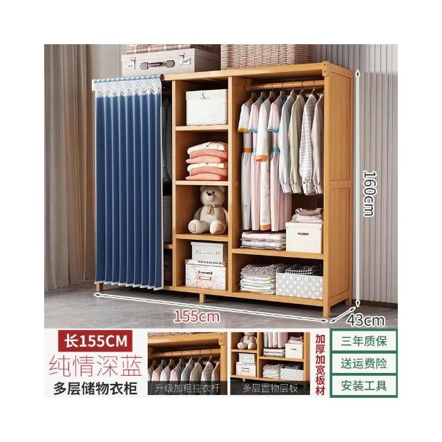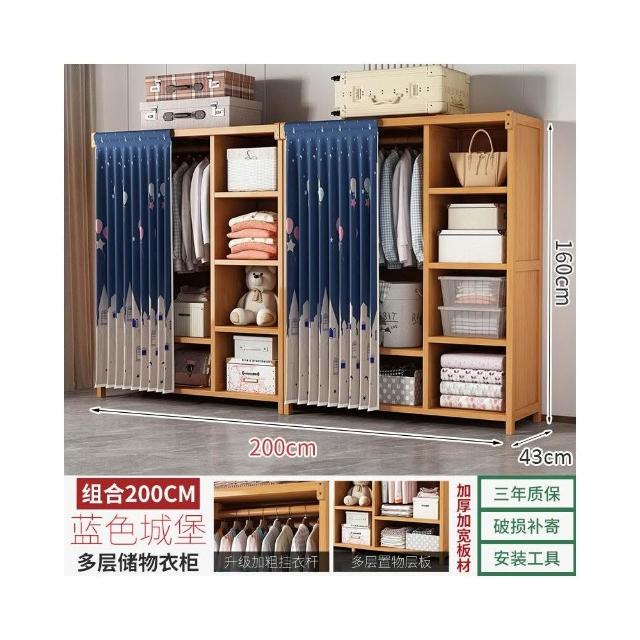 衣櫃臥室家用簡易組裝出租房結實耐用經濟型布藝防塵竹木收納衣櫥 64e