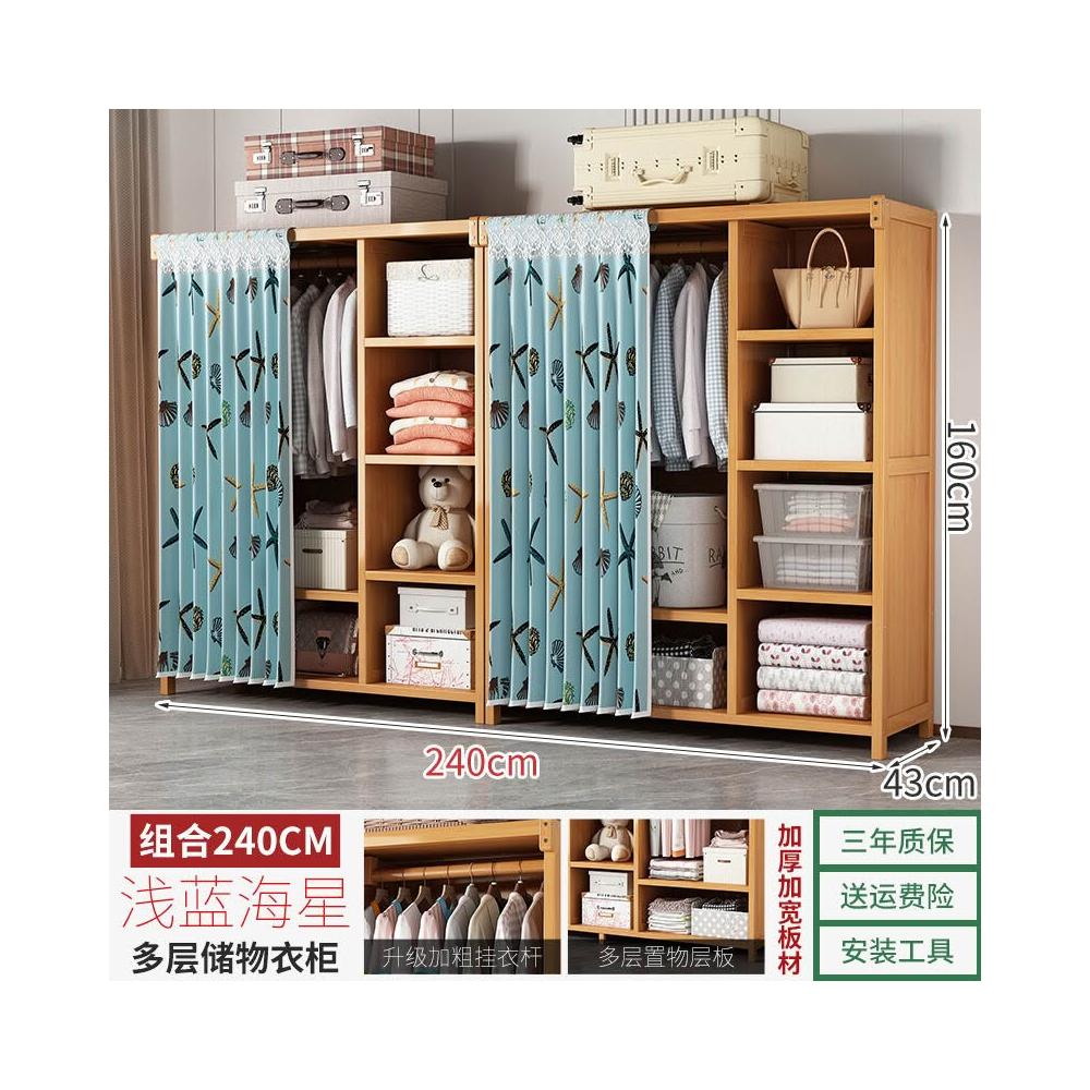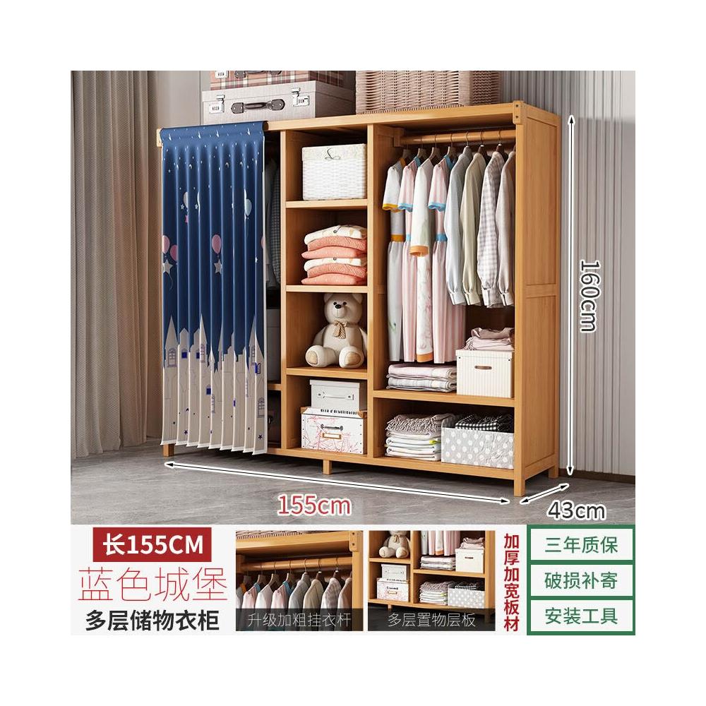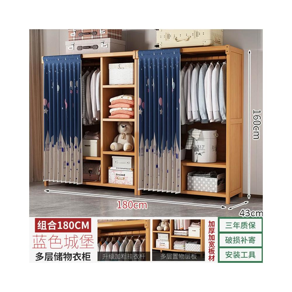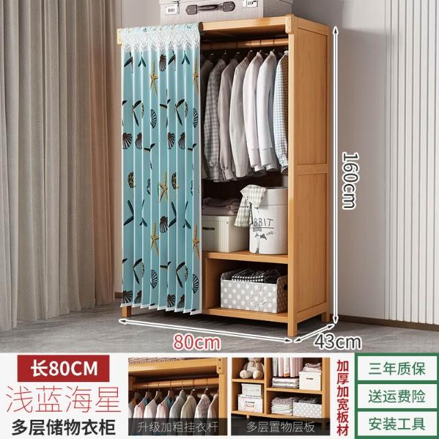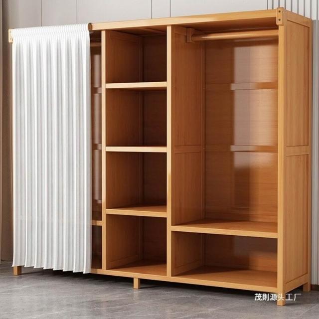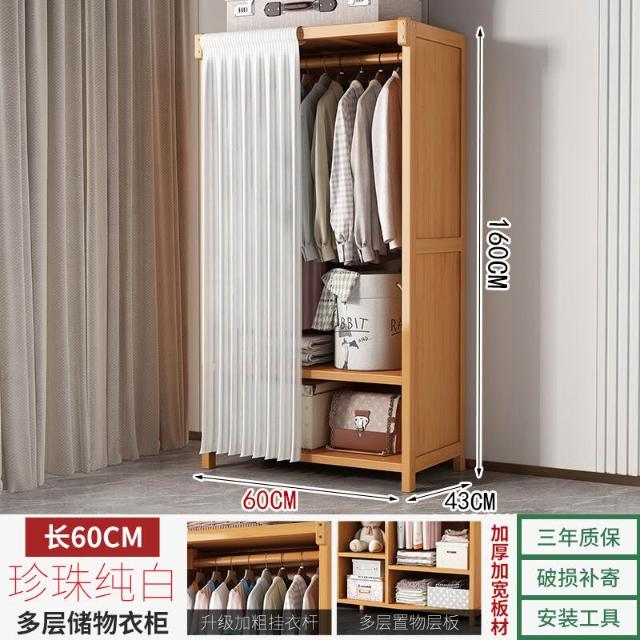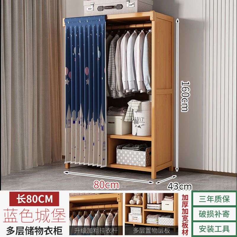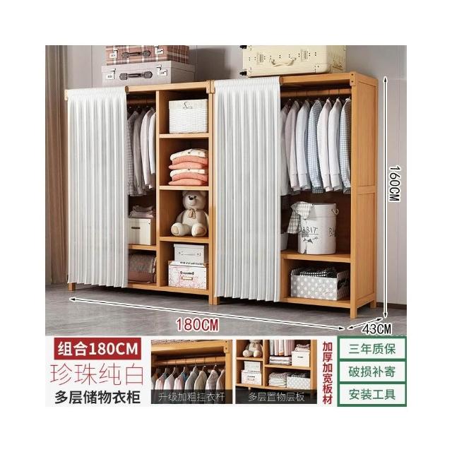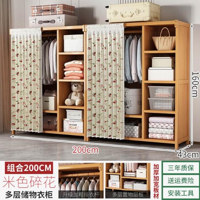 衣櫃臥室家用簡易組裝出租房結實耐用經濟型布藝防塵竹木收納衣櫥 64e