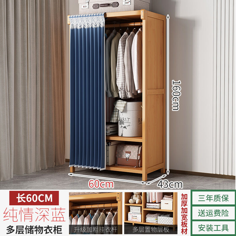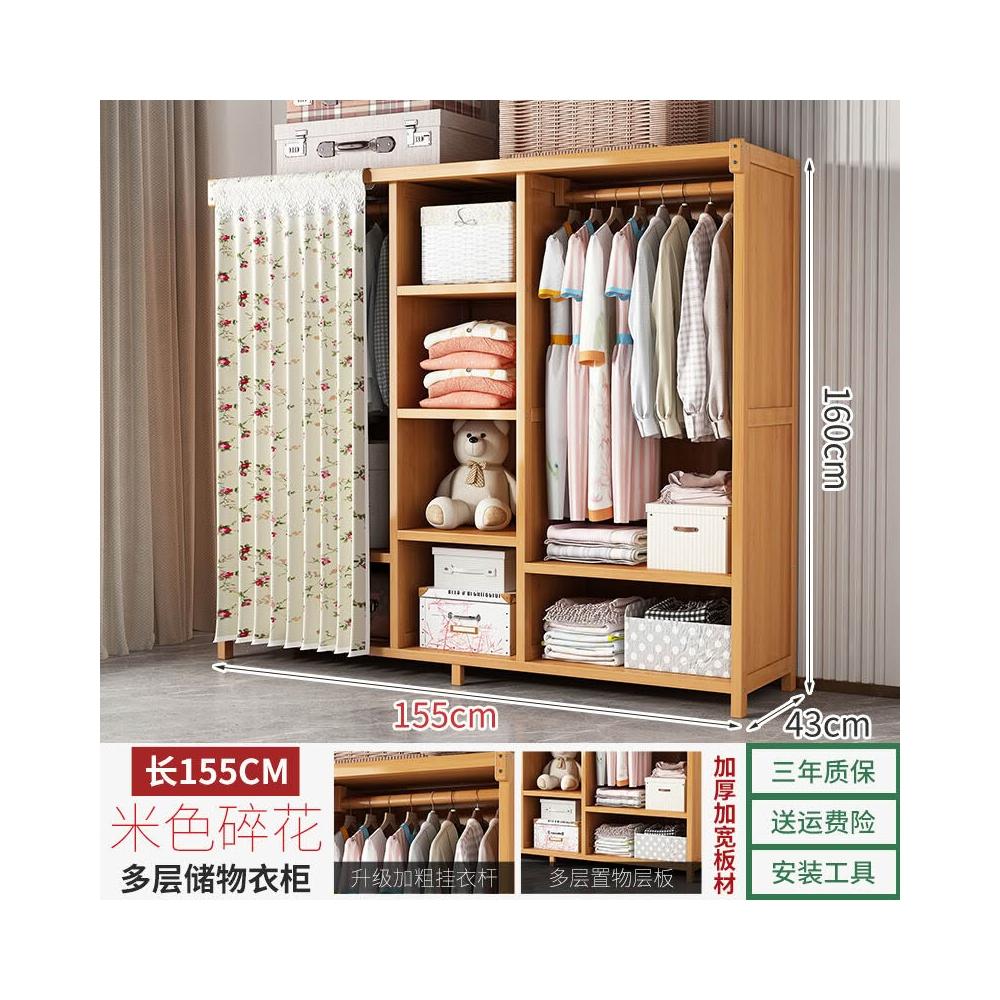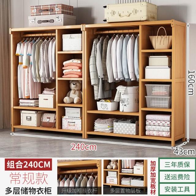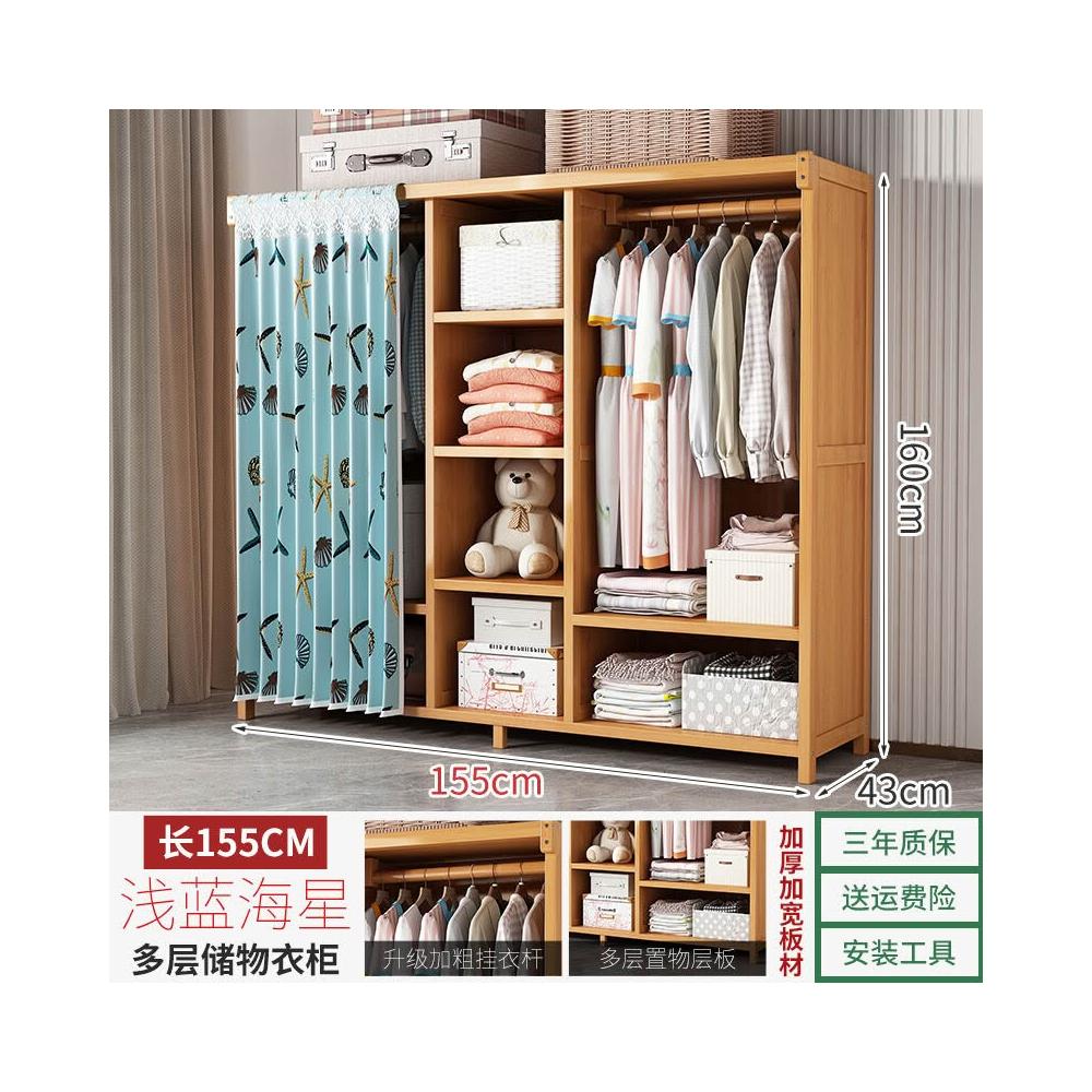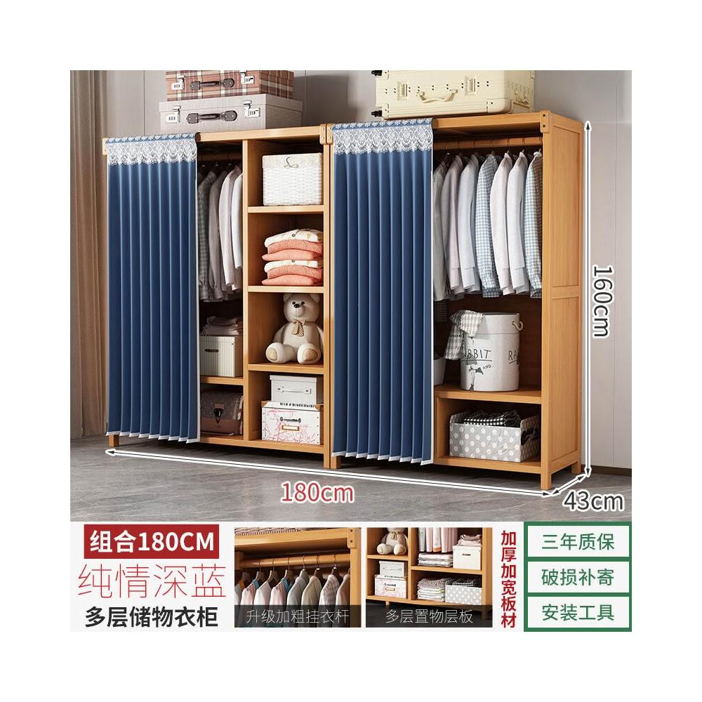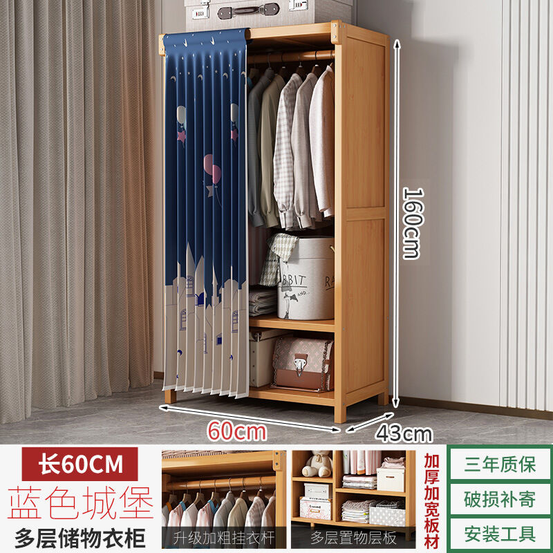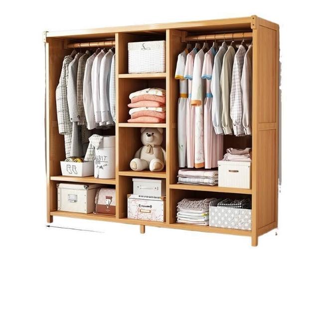 衣櫃臥室家用簡易組裝出租房結實耐用經濟型布藝防塵竹木收納衣櫥 64e