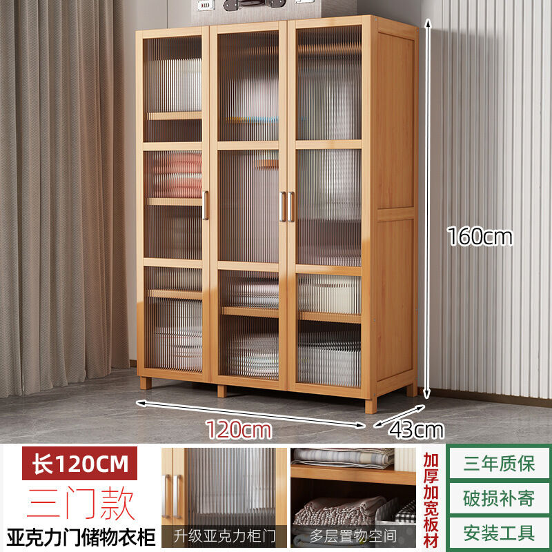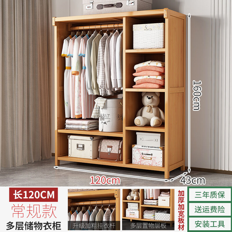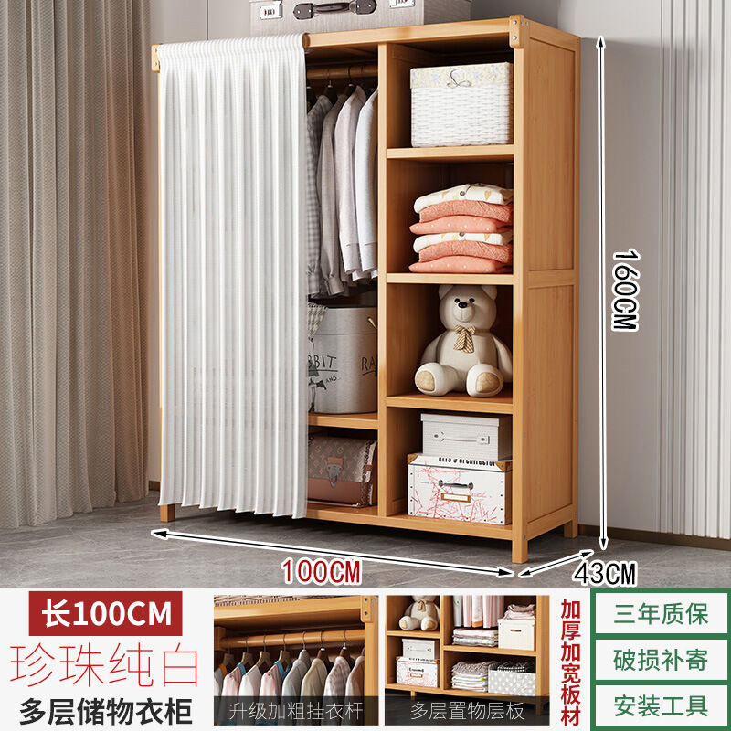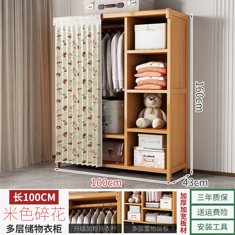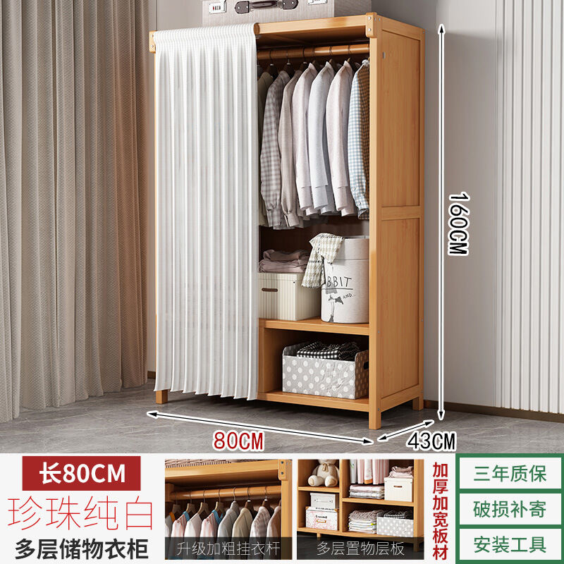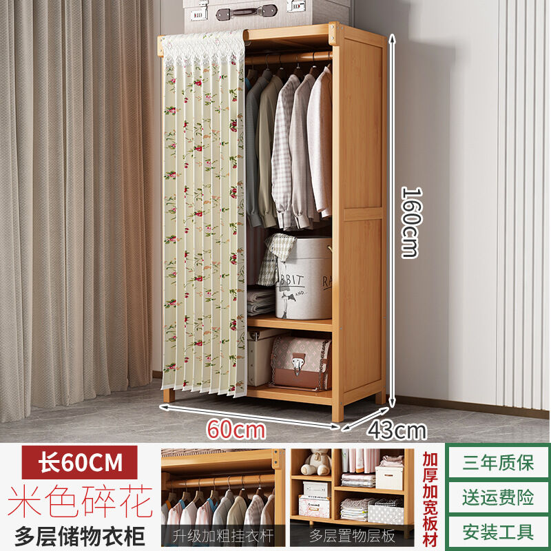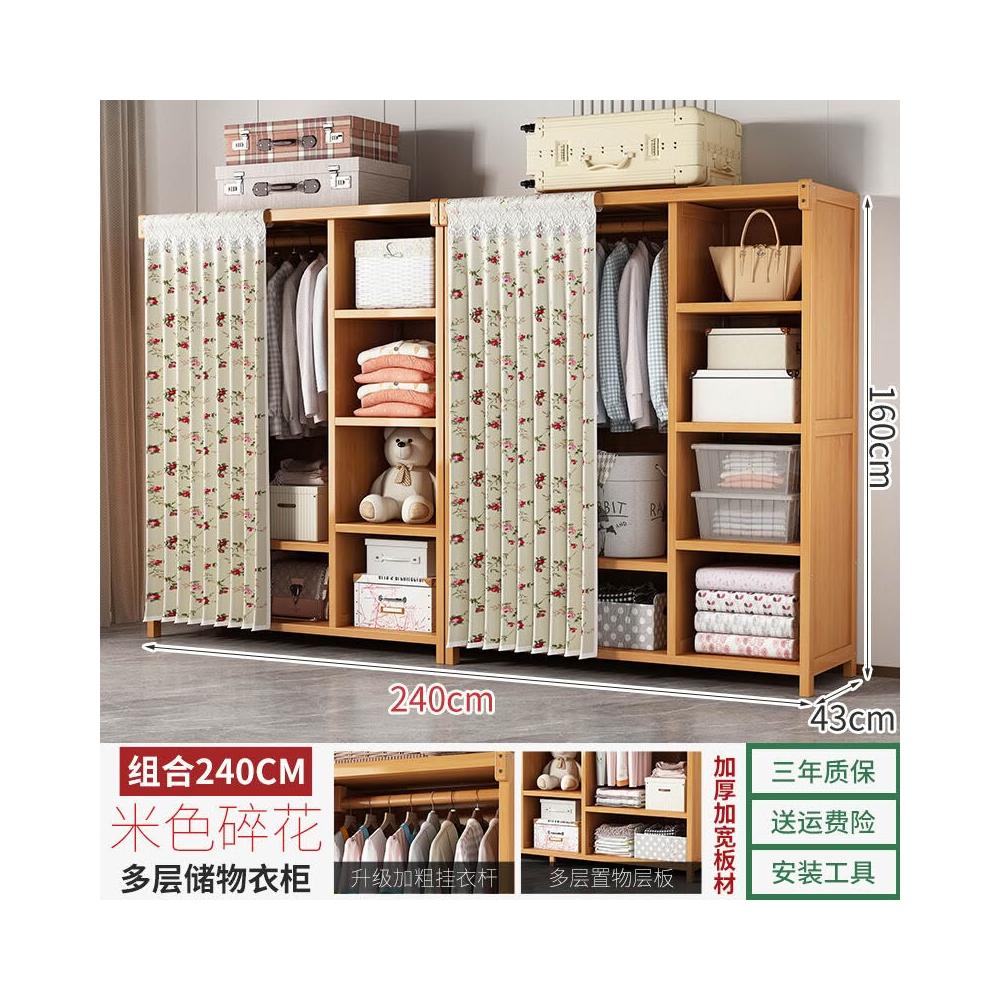 衣櫃臥室家用簡易組裝出租房結實耐用經濟型布藝防塵竹木收納衣櫥 64e