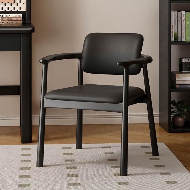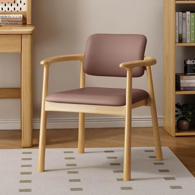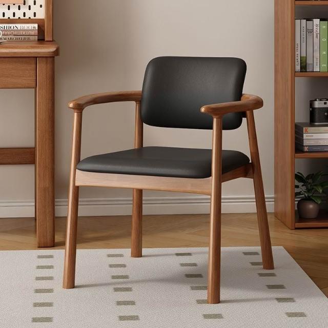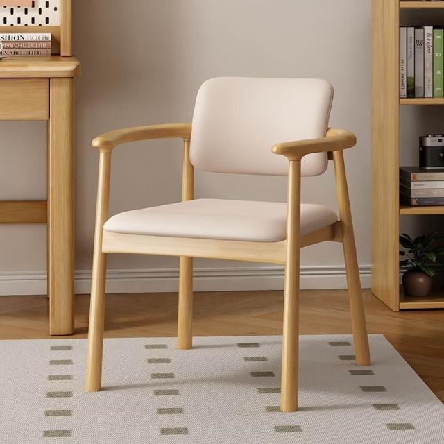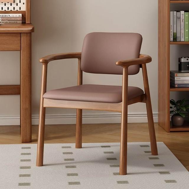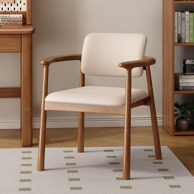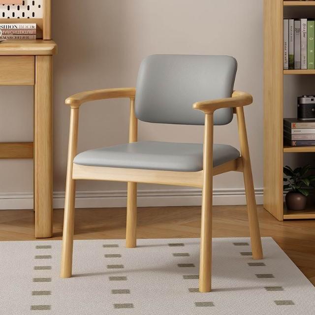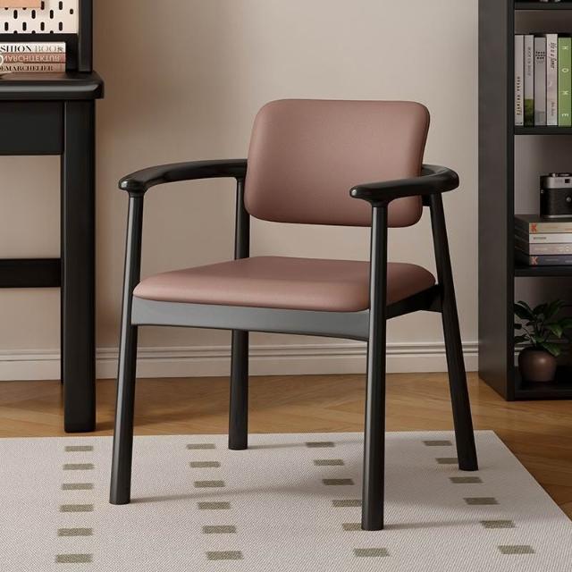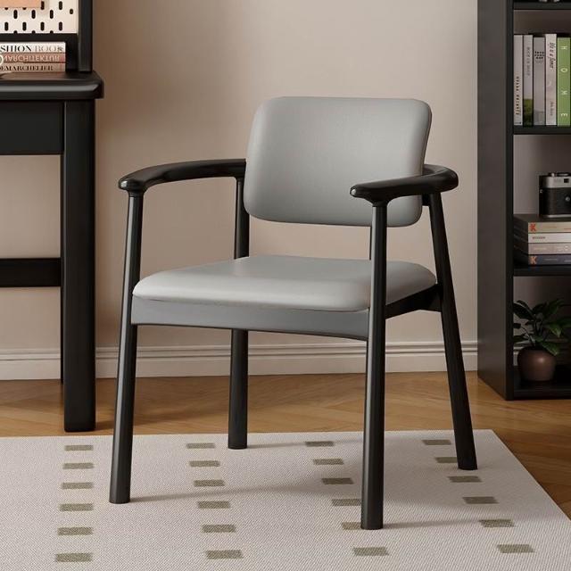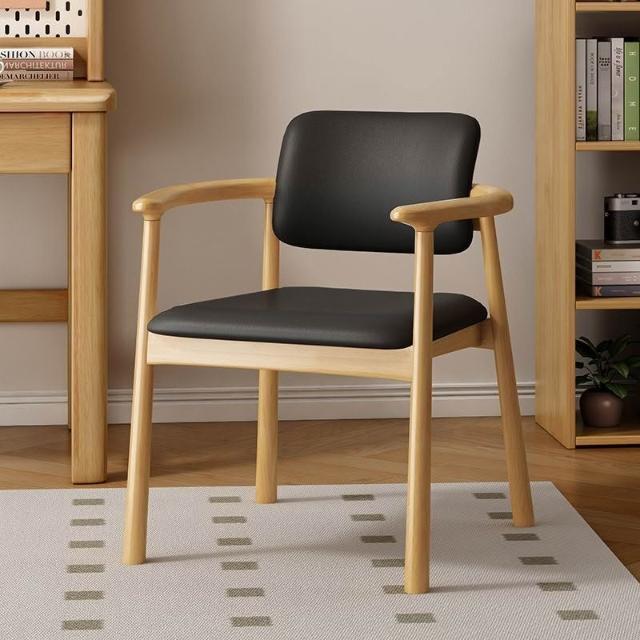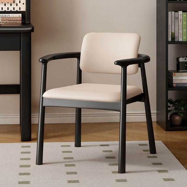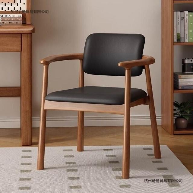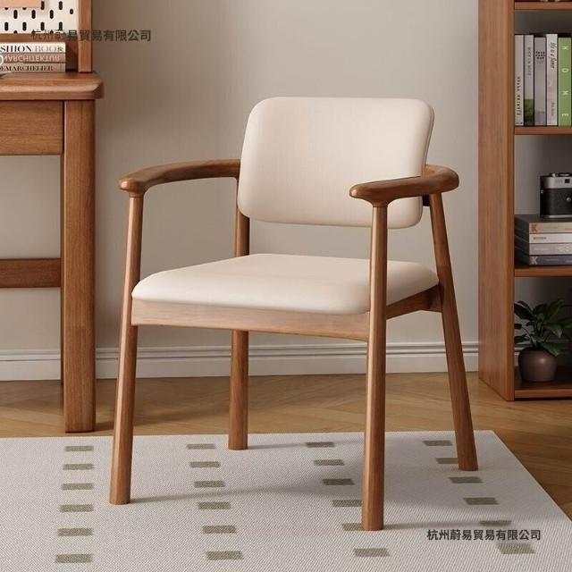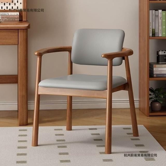 現代簡約實木餐椅北歐茶臺椅休閑會議軟包靠背椅書桌椅餐廳扶手椅 435