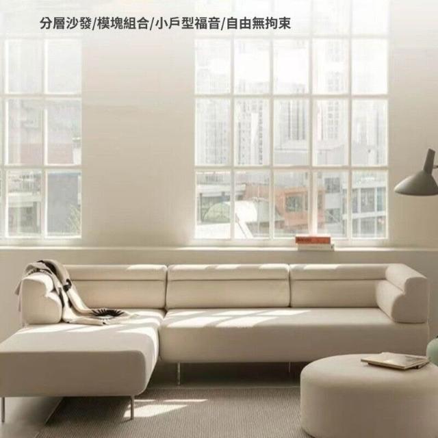 現代奶油風布藝沙發意式簡約別墅大平層客廳轉角直排組合布藝沙發 eee