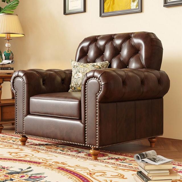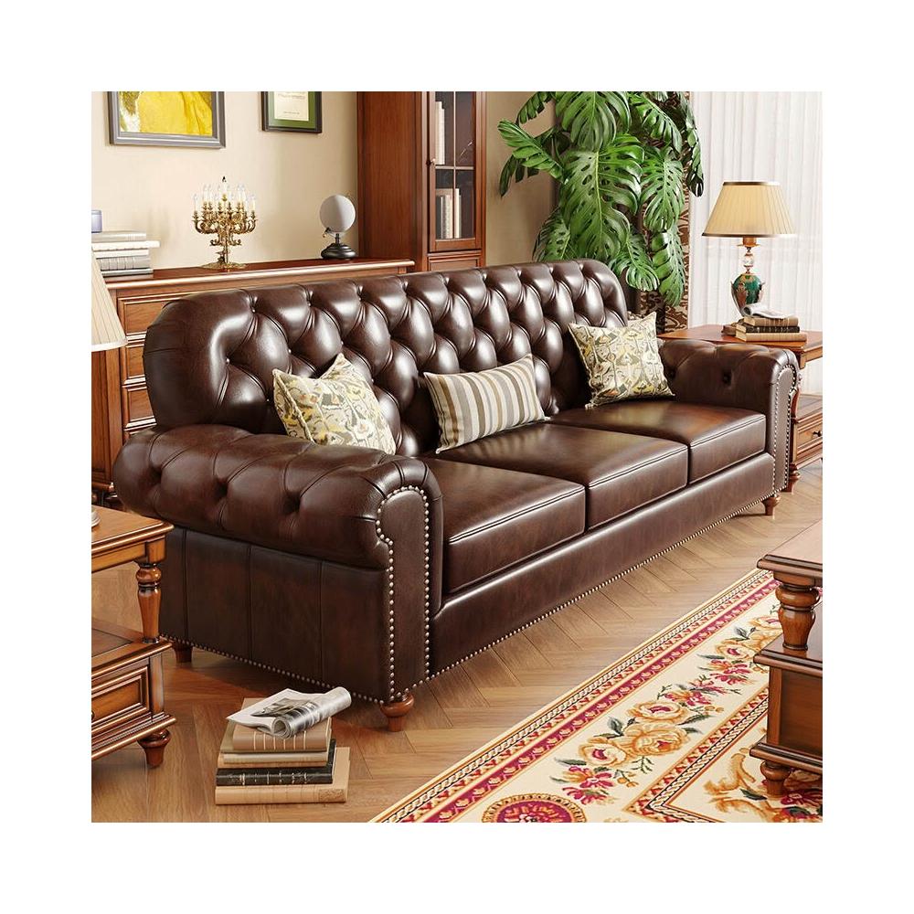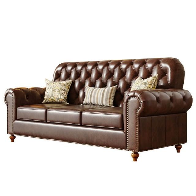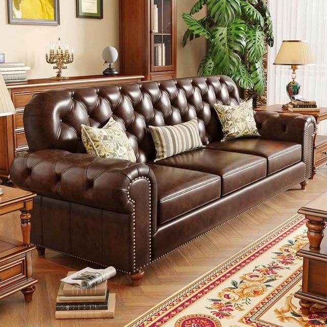 美式實木真皮沙發頭層牛皮123組合簡美鄉村風格客廳家具三人 d53